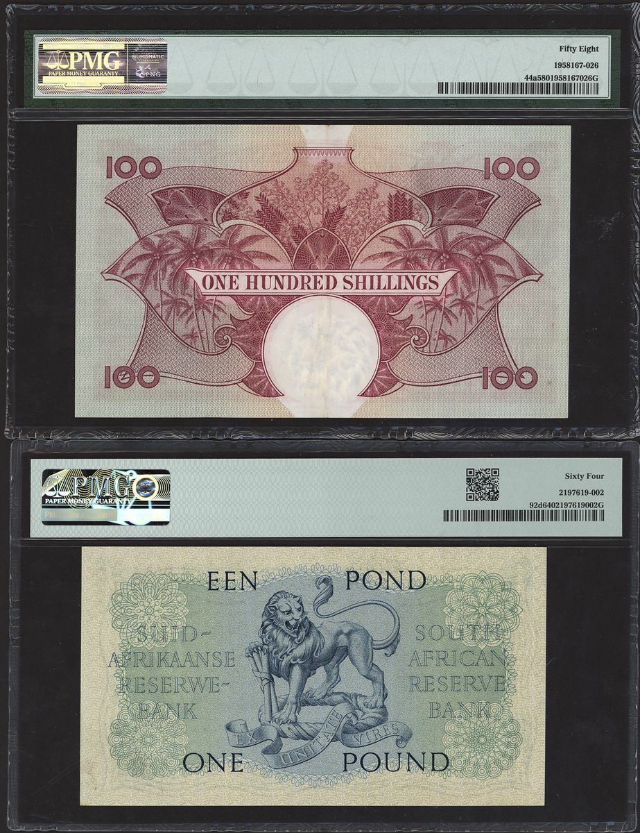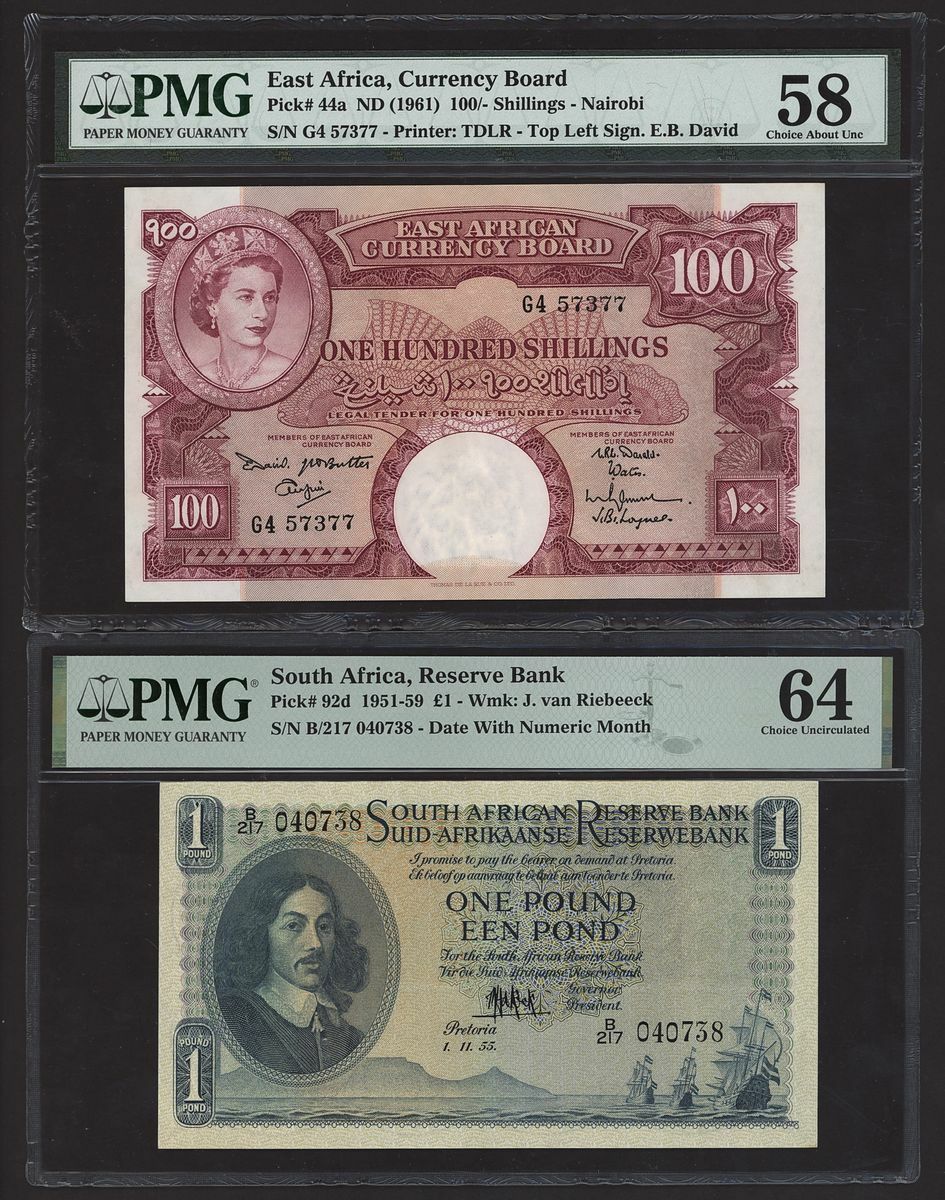 (x) East Africa, South Africa, [3 notes], one 10 /-, two £1, 1951-61, East African (1); South Africa (2)