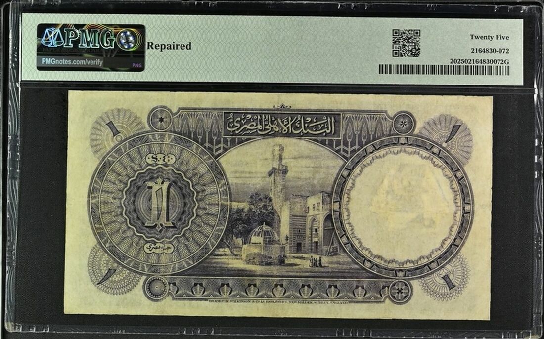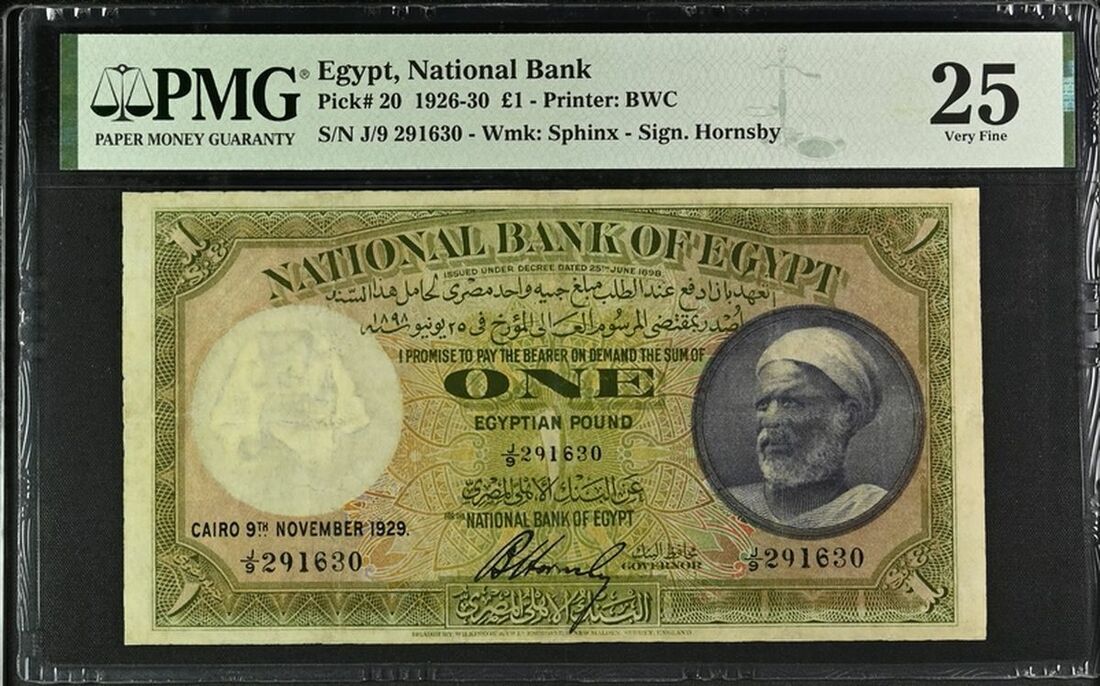 National Bank of Egypt, £1, 9th November 1929, serial number J/9 291630, (Pick 20, BNB 119), in PMG holder 25 Very Fine, repaired