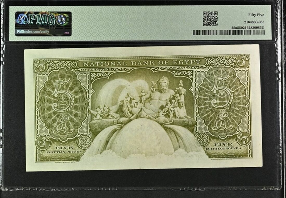 National Bank of Egypt, £5, 24th May 1946, serial number AB/20 073852, (Pick 25a, BNB 124a), in PMG holder 55 About Uncirculated