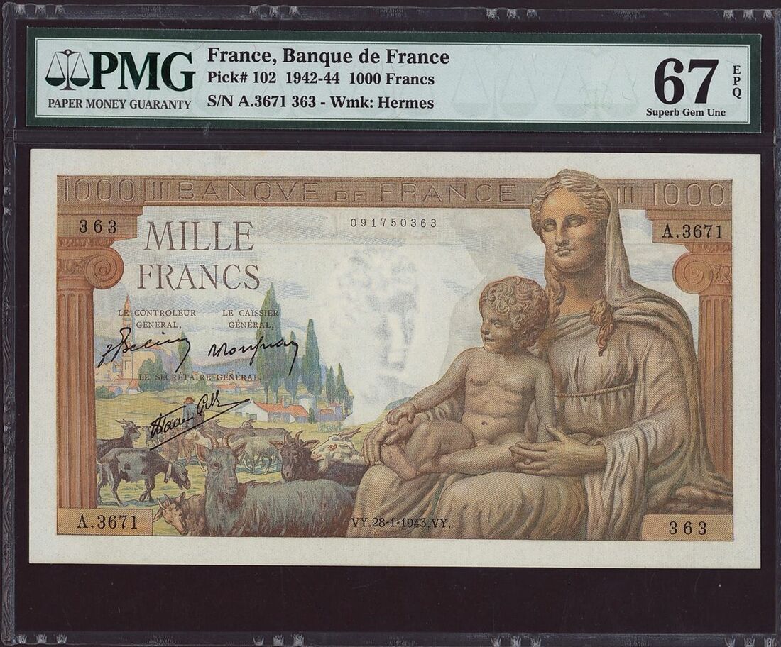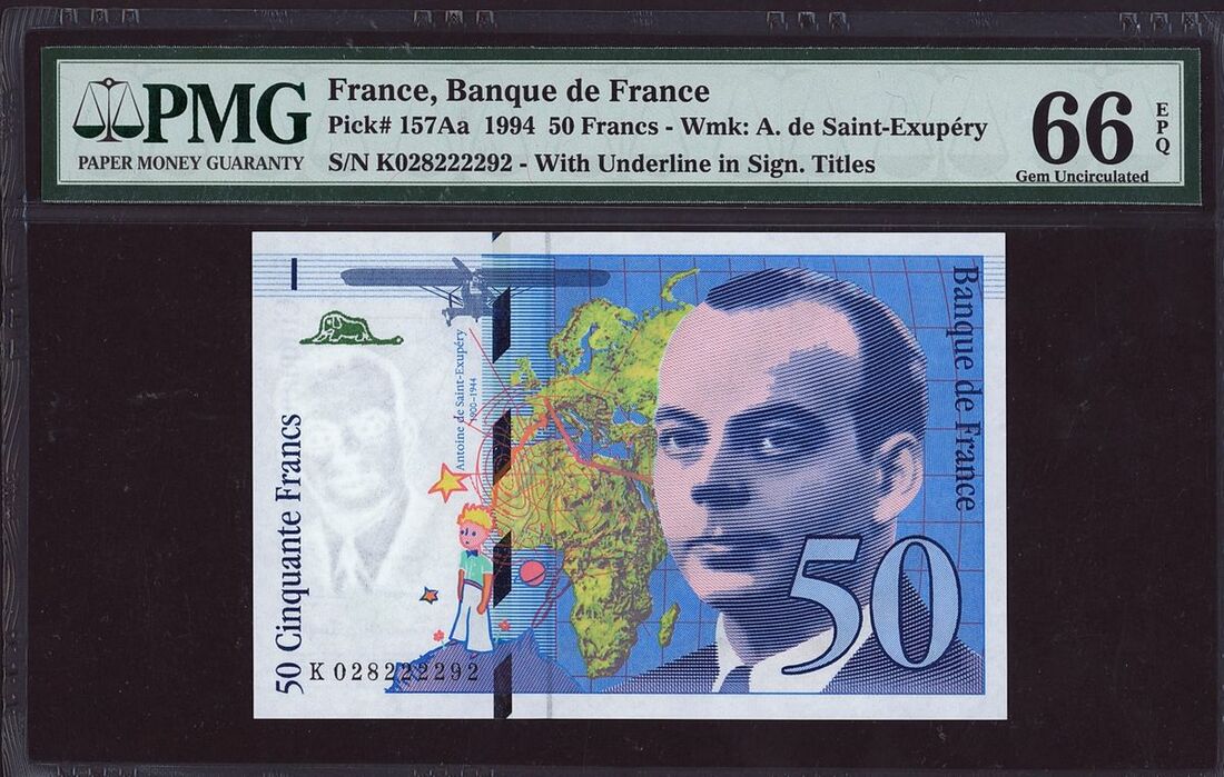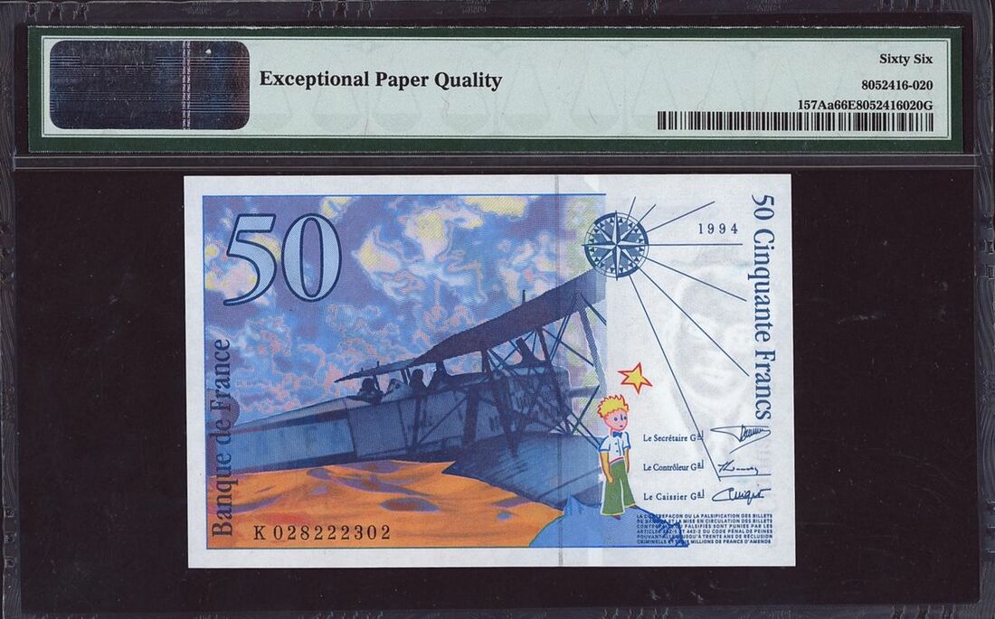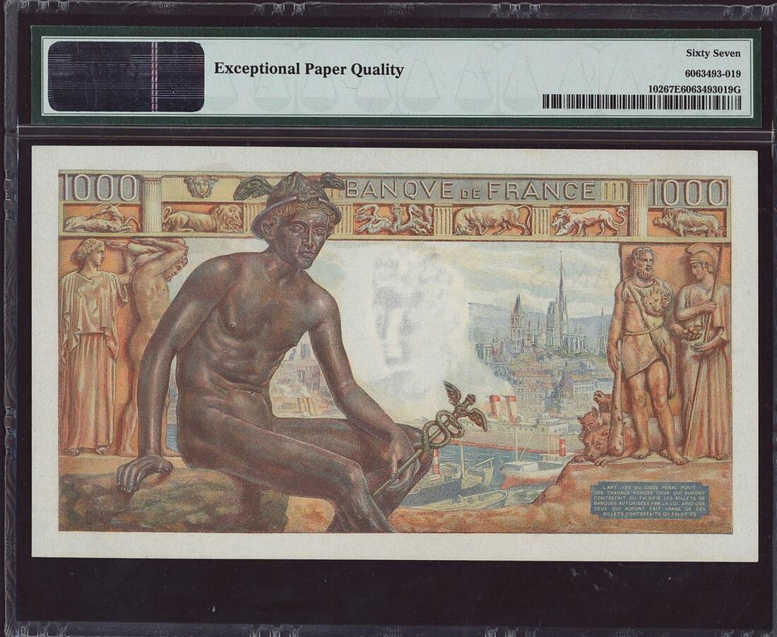 (x) France, Banque de France, five assorted notes, two 500 francs, one 1000 francs, two 50 francs, 1941-94, consecutive serials numbers on the 500 francs notes