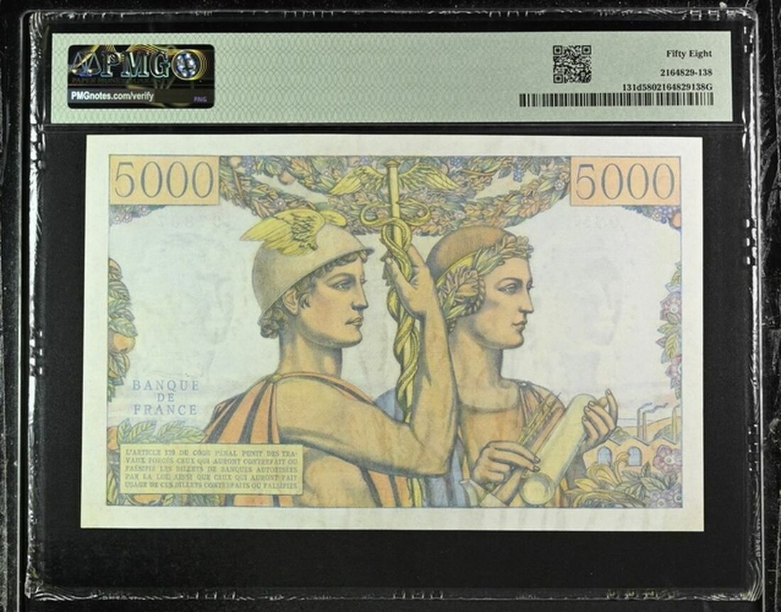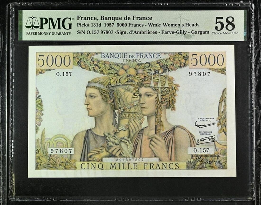 Banque de France, 5000 Francs, 7th March 1957, serial number O.157 97807, (Pick 131d), in PMG holder 58 Choice About Uncirculated, only 3 notes in higher grade