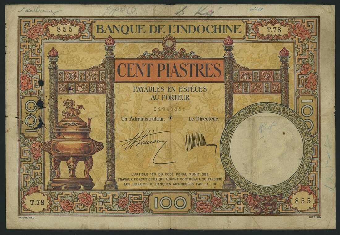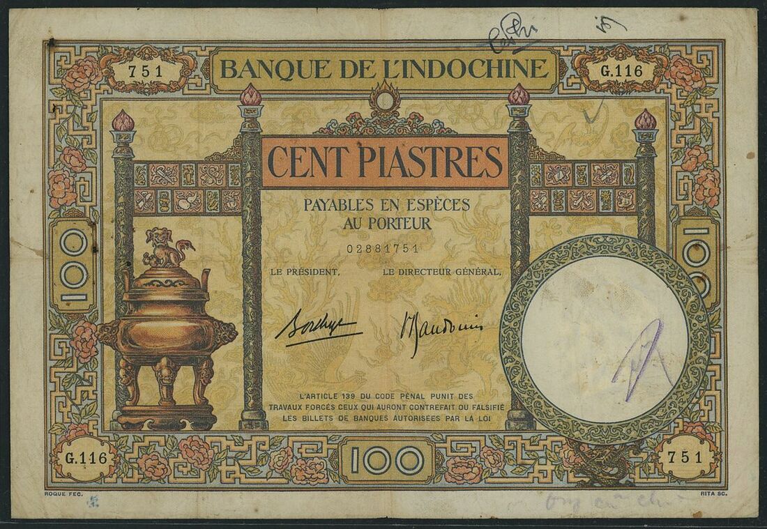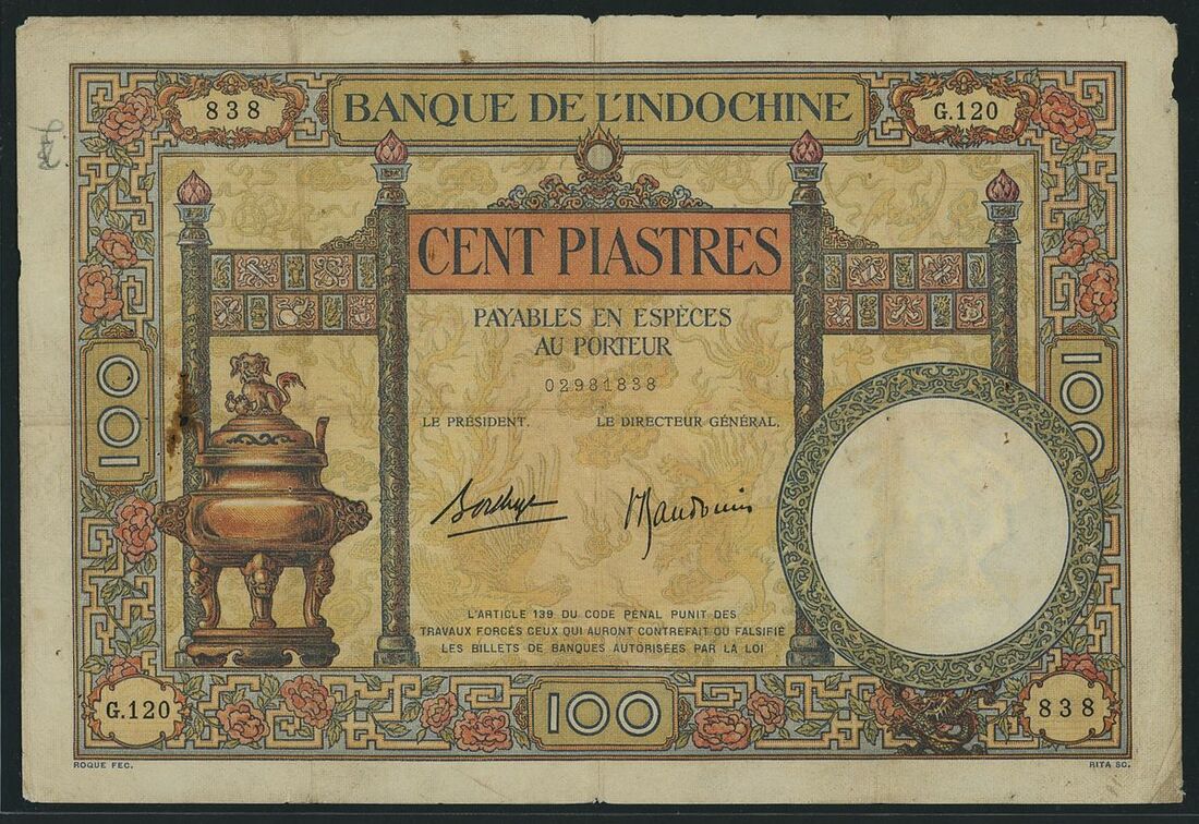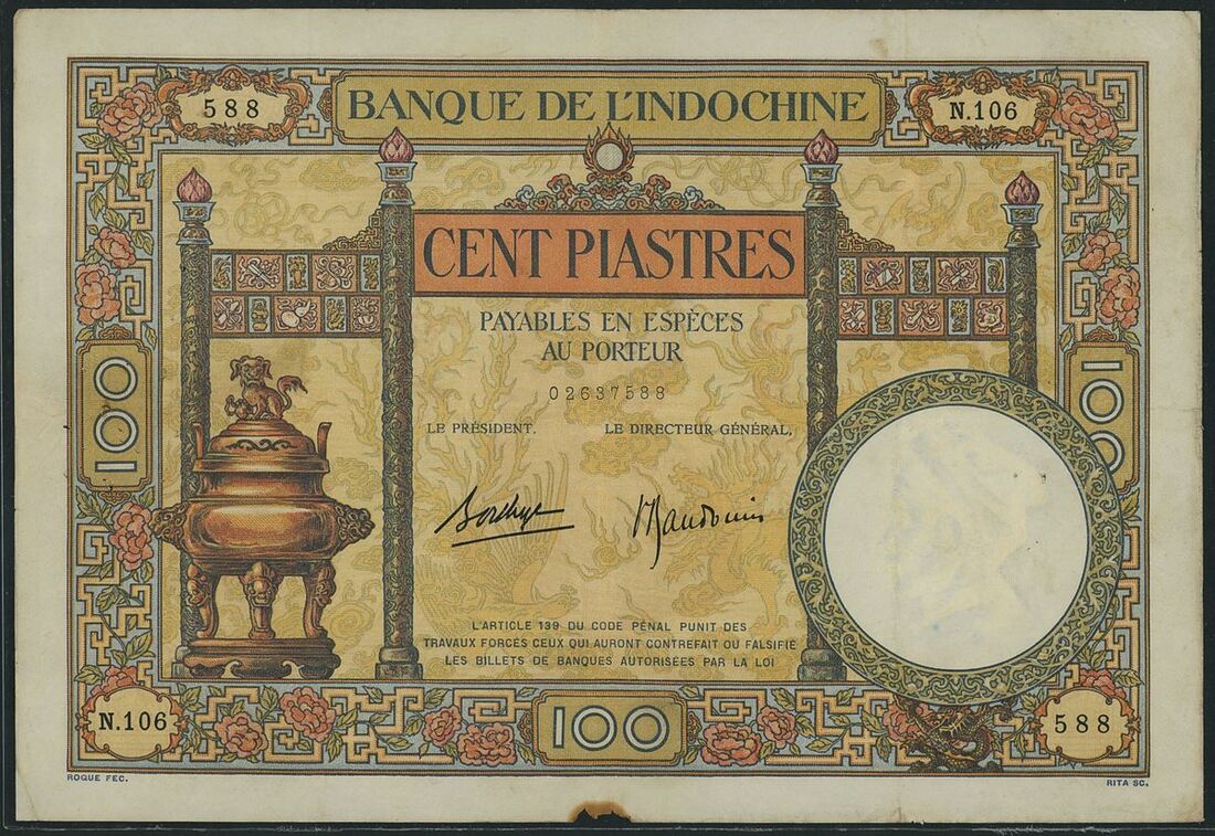 (x) French Indo-China, [4 notes], 100 piastres, ND (1925-36), (Pick 51b, 51d, 51d, 51d), Good, foxing, graffiti and holes present