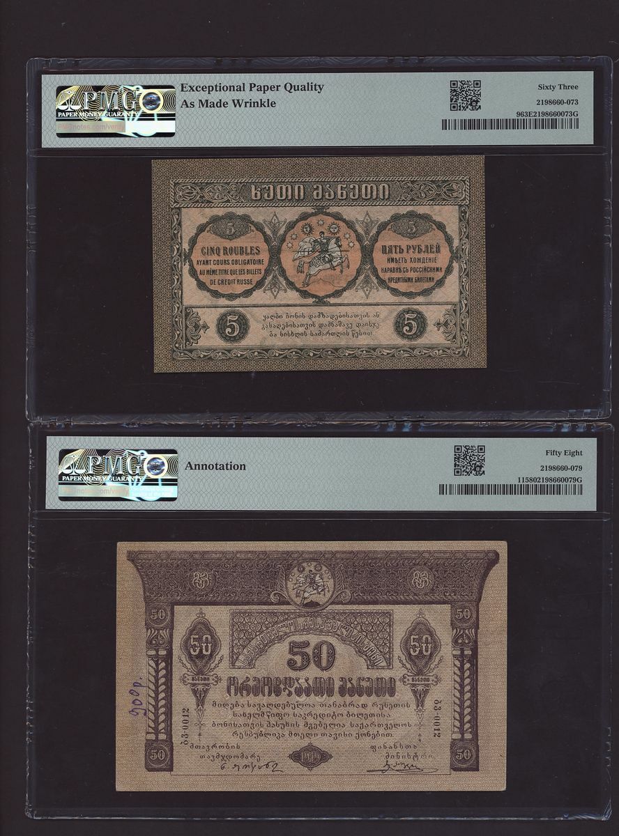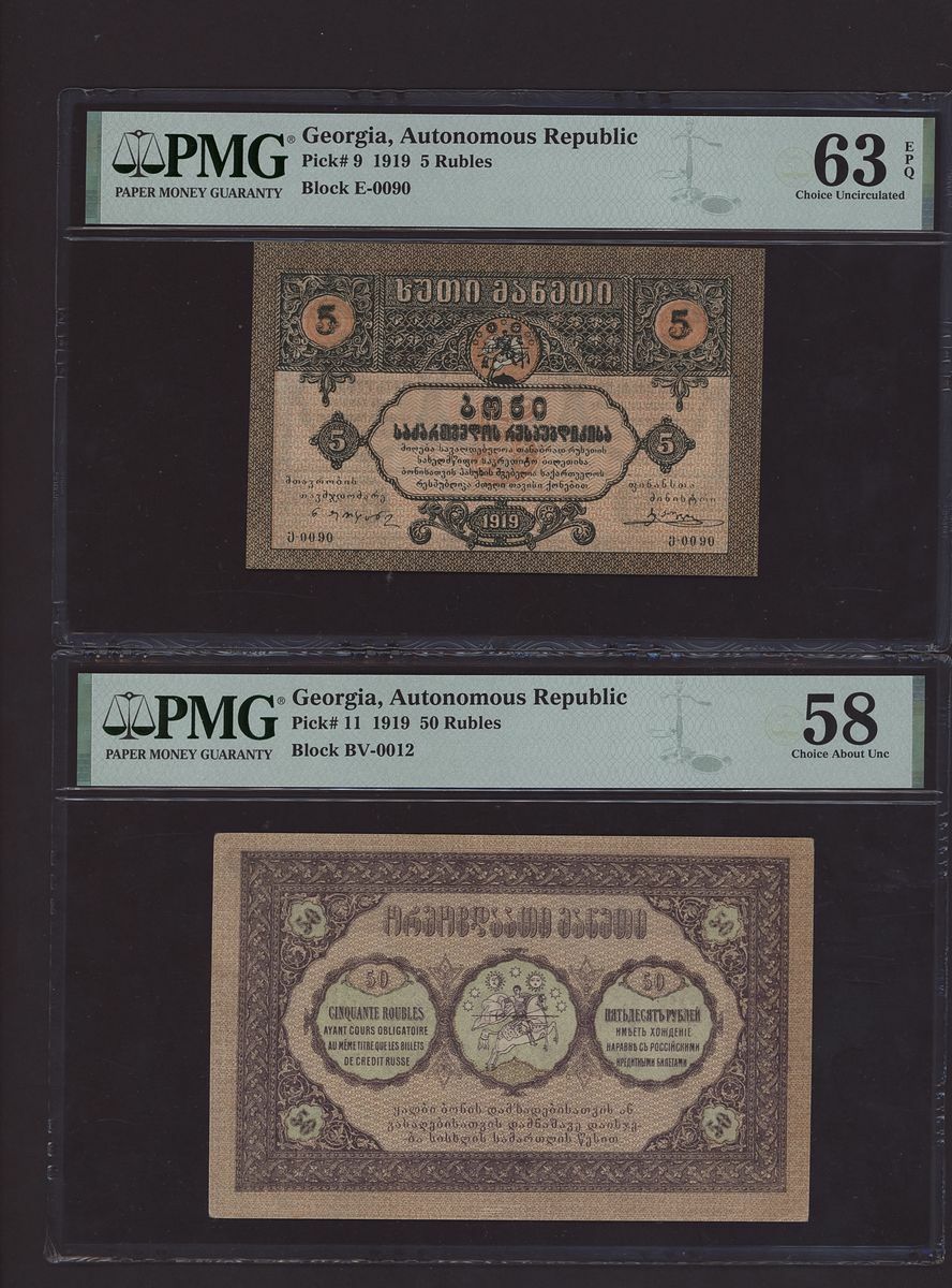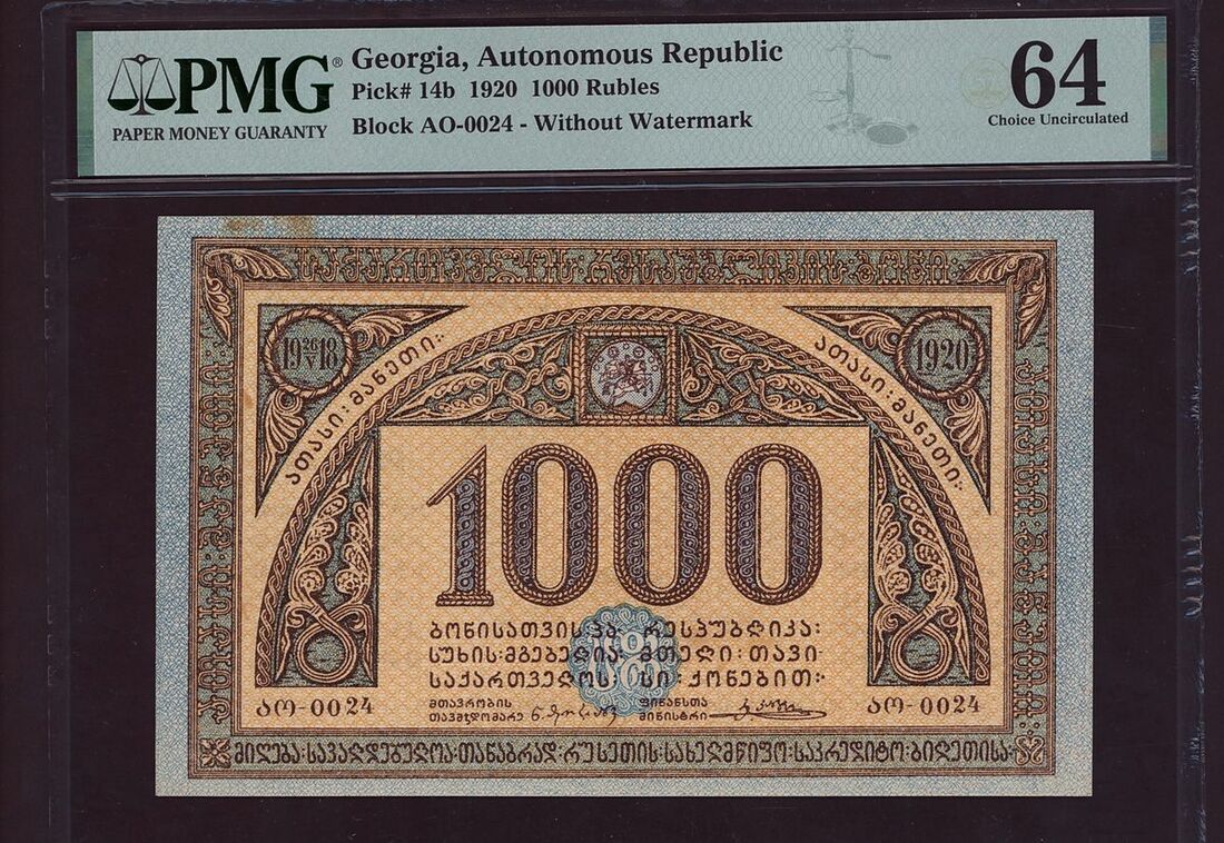 (x) Autonomous Republic, Georgia, Group of 7 banknotes from the 1919-1921 issues, 1000 Roubles, 1920, Block AO-0024,