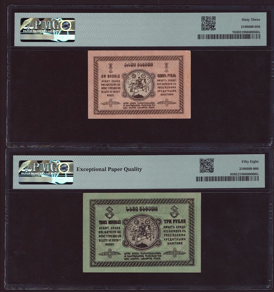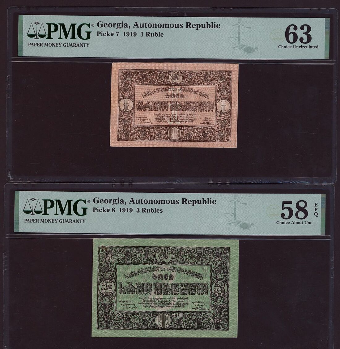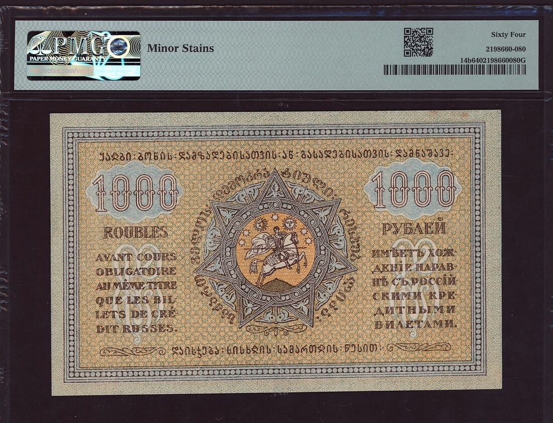 (x) Autonomous Republic, Georgia, Group of 7 banknotes from the 1919-1921 issues, 1000 Roubles, 1920, Block AO-0024,