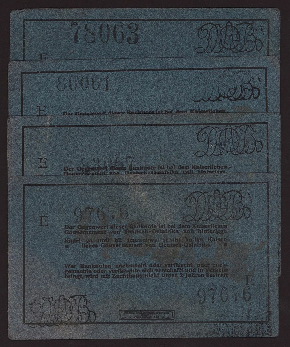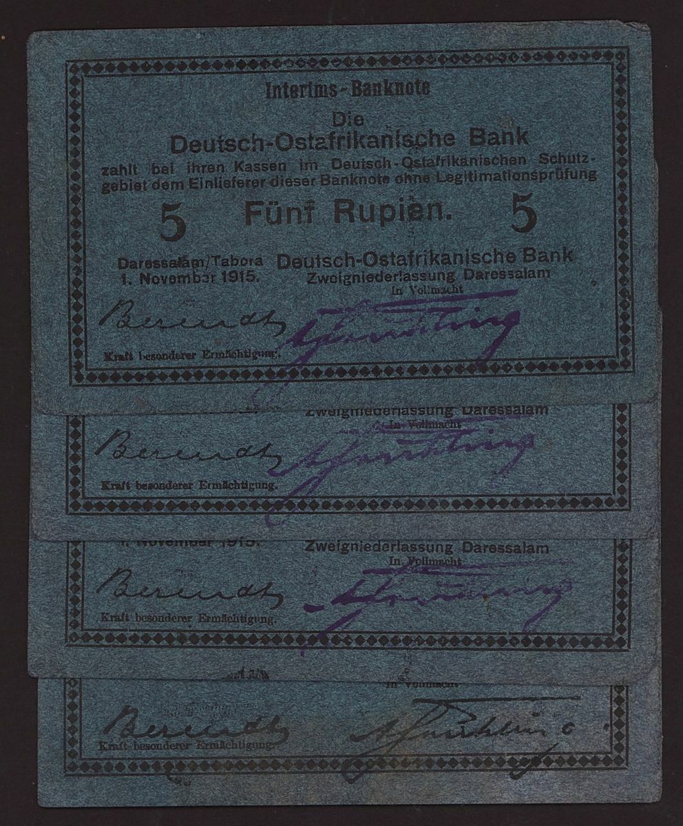 Deutsch-Ostafrikanische Bank, German East Africa, group of 5 rupien, 1st November 1915, serial numbers E78063, E80061, E83067, E97676