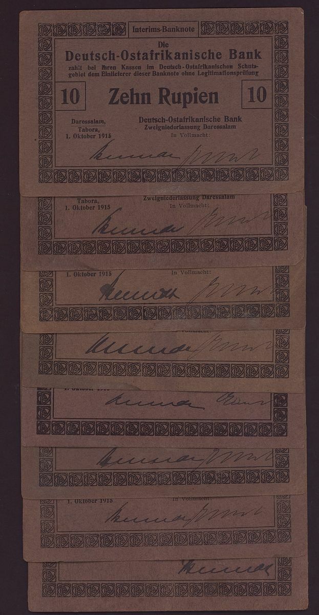 Deutsch-Ostafrikanische Bank, German East Africa, group of 10 rupien, 1st October 1915, (Pick 38a), corners rounded, otherwise paper good extremely fine (8 notes)