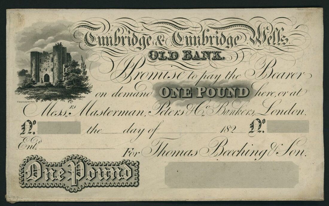 Tunbridge & Tunbridge Wells, Old bank, Proof £1, 182-, Thomas Beeching & Son, unissued, (Outing 2216 for similar), extremely fine