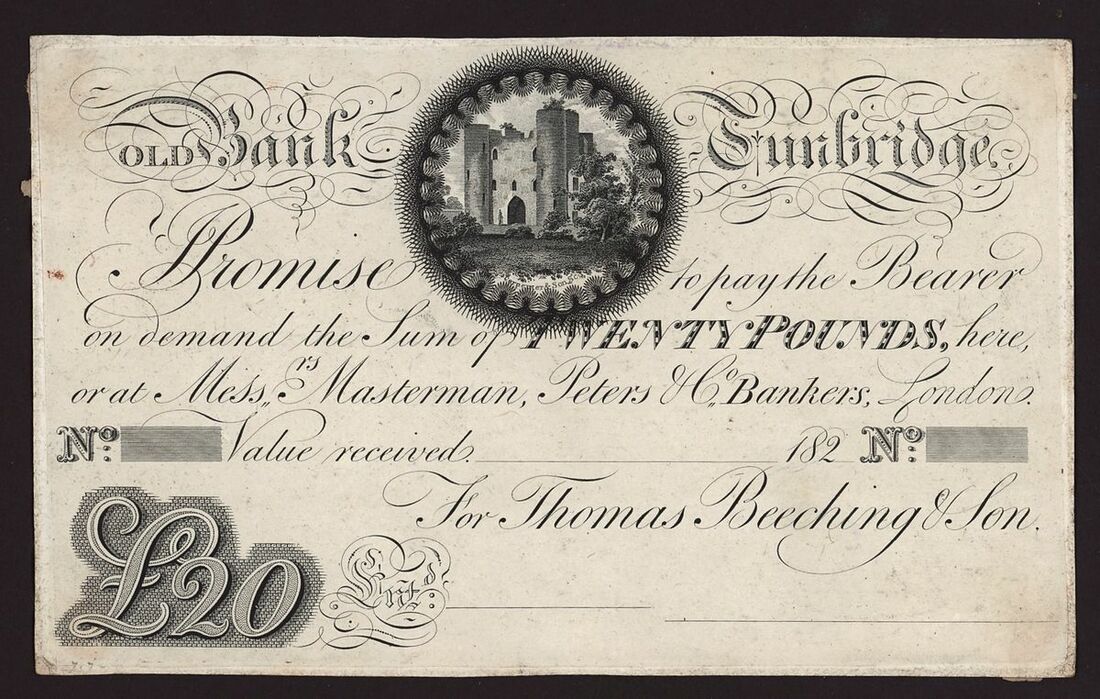 Great Britain, Old Bank at Tunbridge Wells, £20, 182-, no serial number, (Outing 2217),