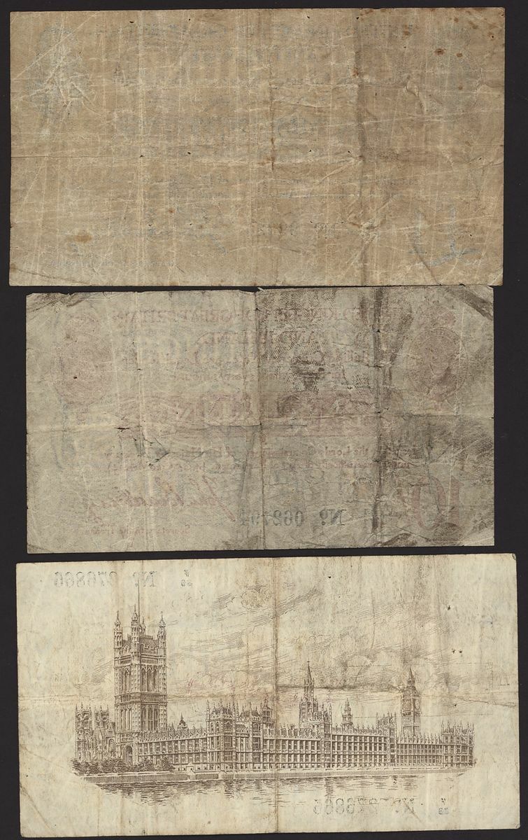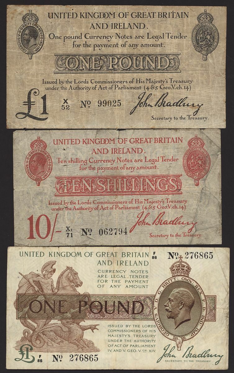 Great Britain, Bank of England, [3 notes] 10/-, £1, 1914-1917, Bank of England notes featuring the signature of John Bradbury