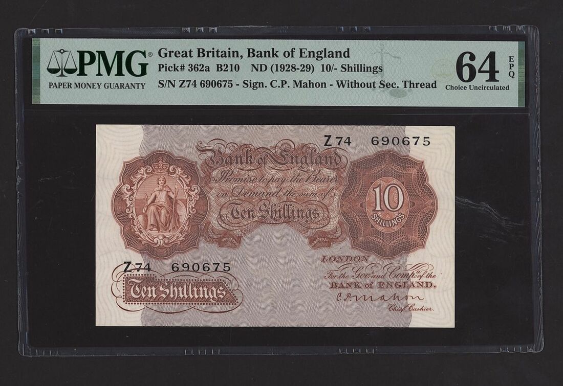 Bank of England, C.P. Mahon, 10/- Shillings, ND (1928-29), serial number Z74 690675, (Pick 362a, BNB 171, EPM B210), in PMG holder 64 EPQ Choice Uncirculated