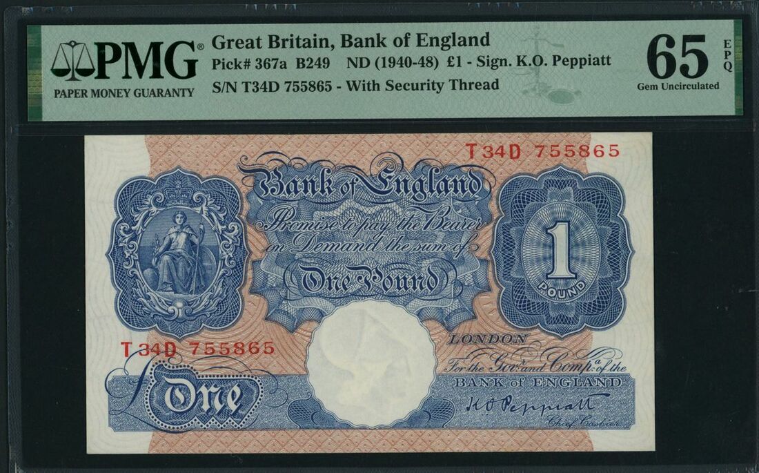 Great Britain, Bank of England, £1, ND (1940-48), serial number T34D 755865, (Pick 367a, BNB 249), in PMG holder 65EPQ Gem Uncirculated