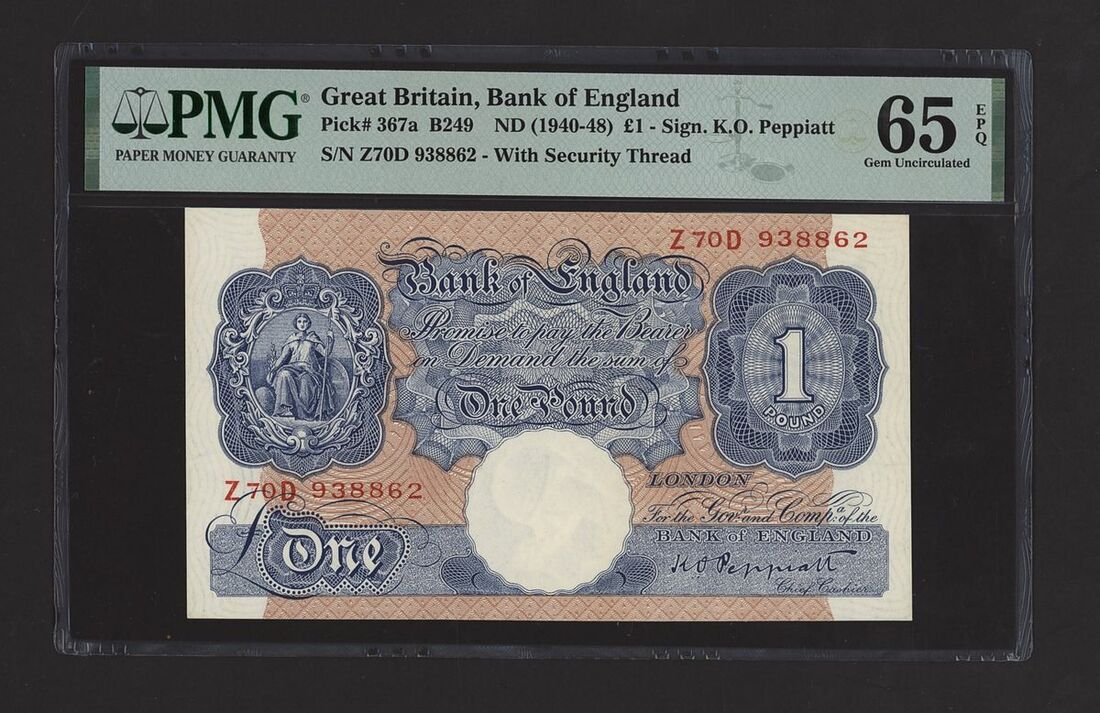 Bank of England, K. O. Peppiatt, £1, ND (1940-48), serial number Z70D 938862, (Pick 367a, BNB 176, EPM B249), in PMG holder 65 EPQ Gem Uncirculated