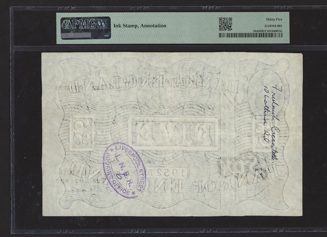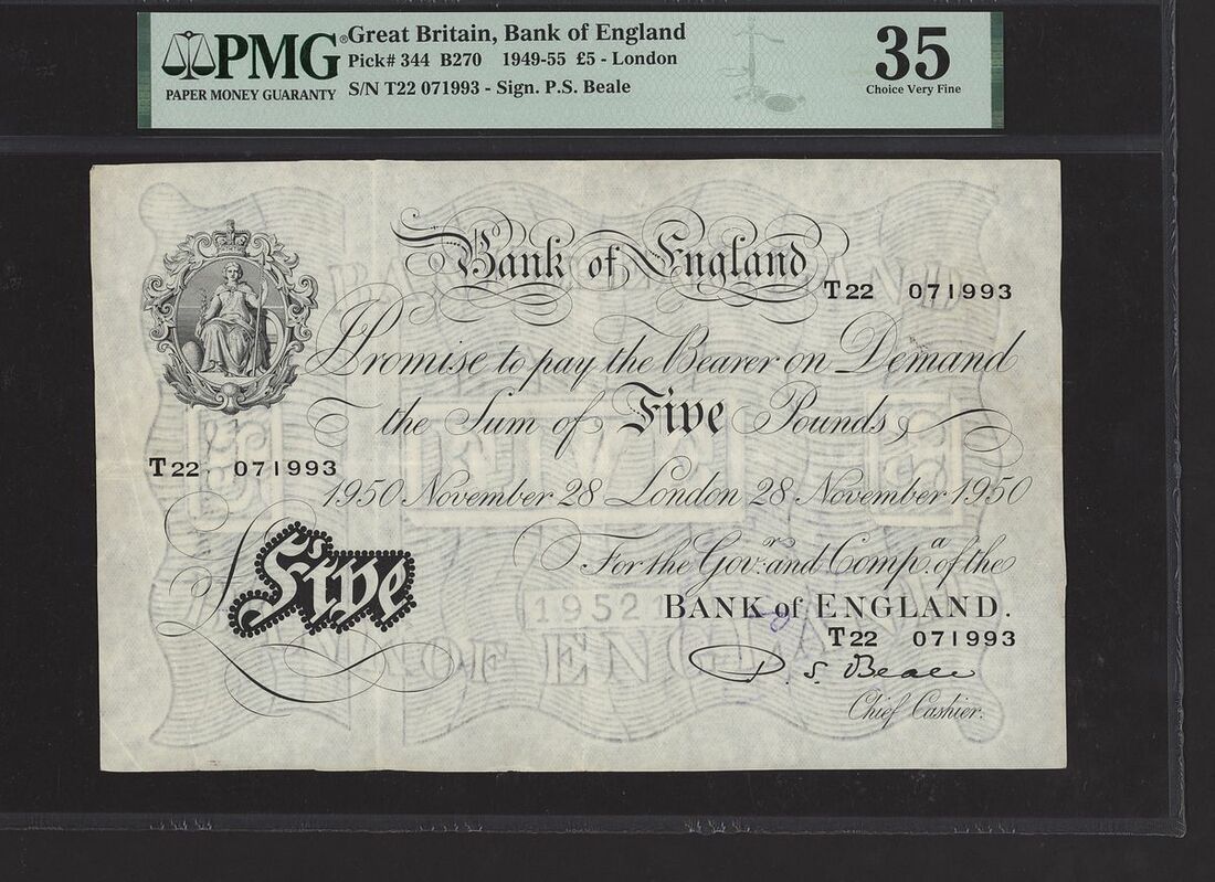 (x) Bank of England, P.S. Beale, £5, 28th November 1950, serial number T22 071993, (EPM B270), in PMG holder 35 Choice Very Fine