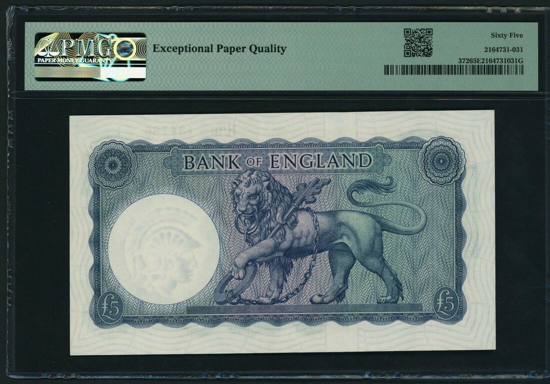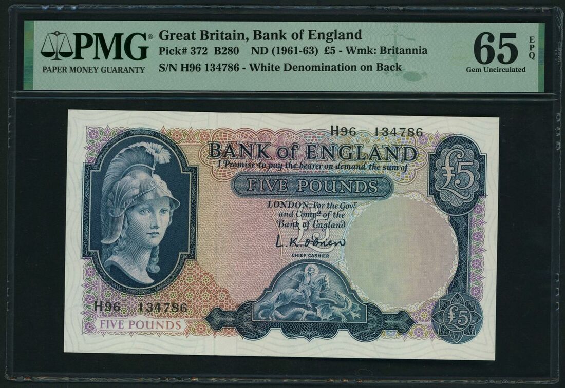 Bank of England, L.K. O´Brien £5, ND (1961-63), serial number H96 134786, (Pick 372, EPM B280, BNB 178), in PMG holder 65 EPQ Gem Uncirculated