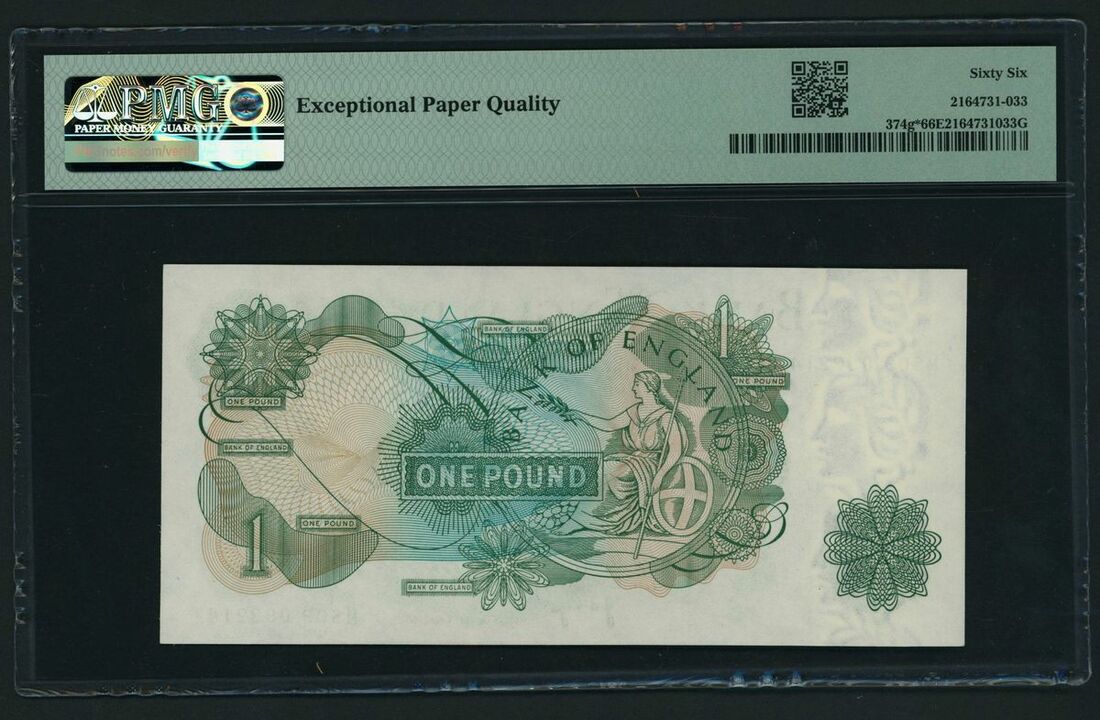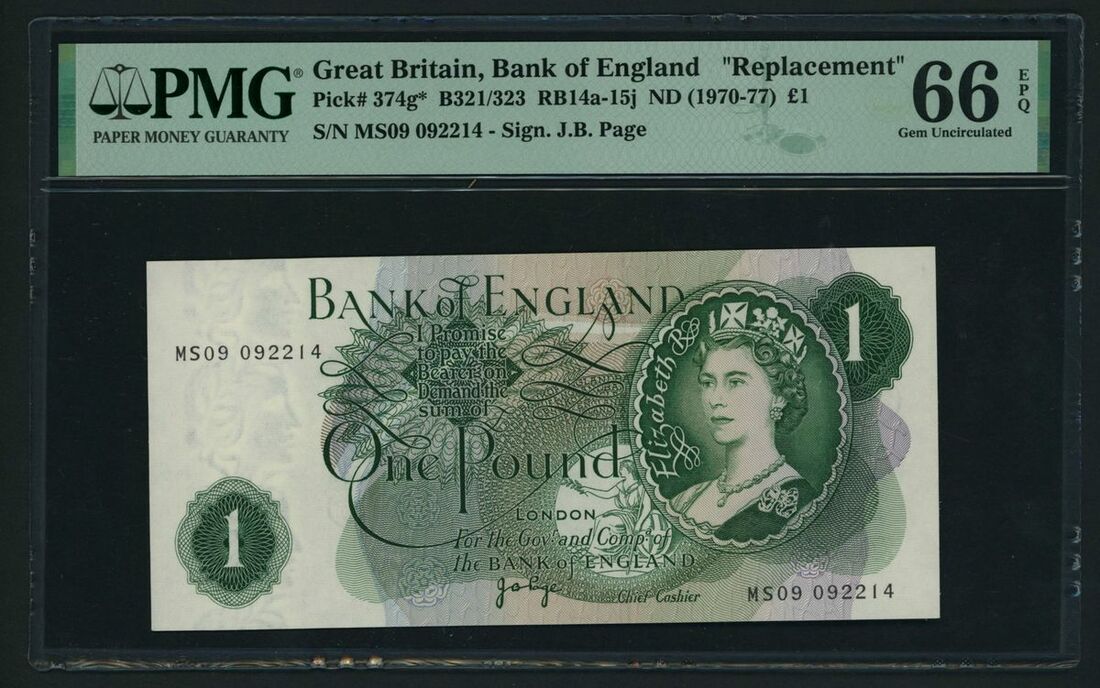 Bank of England, J.B. Page, replacement £1, ND (1970-77), serial number MS09 092214, (Pick 374g*, EPM B321/323, RB14a-15j, BNB 180), in PMG holder 66 EPQ Gem Uncirculated