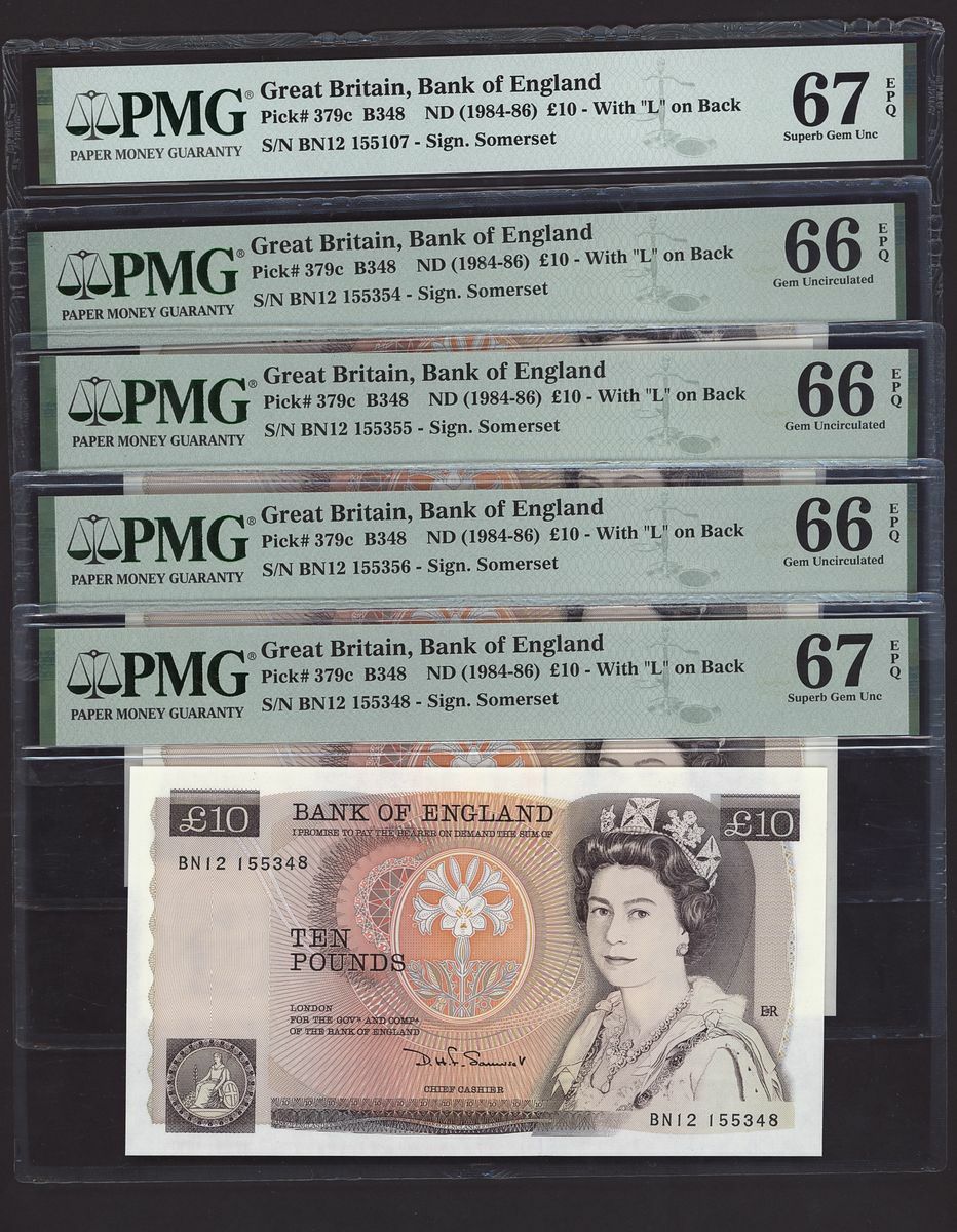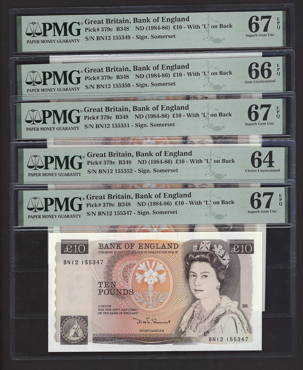 (Pick 379c, B348), all in PMG holders 64 Choice Uncirculated to 67EPQ Superb Gem Uncirculated (10 notes)