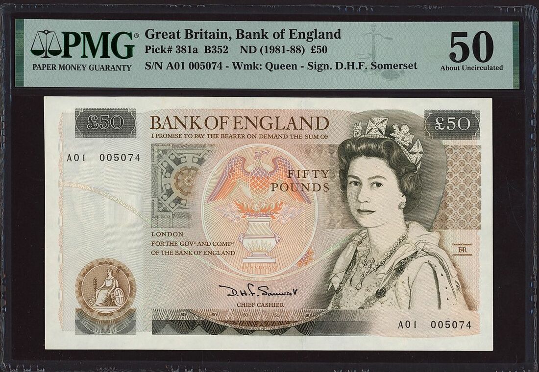 Bank of England, D.H.F. Somerset, £50, ND (1981-88), serial number A01 005074, (Pick 381a, EPM B352), in PMG holder 50 About Uncirculated