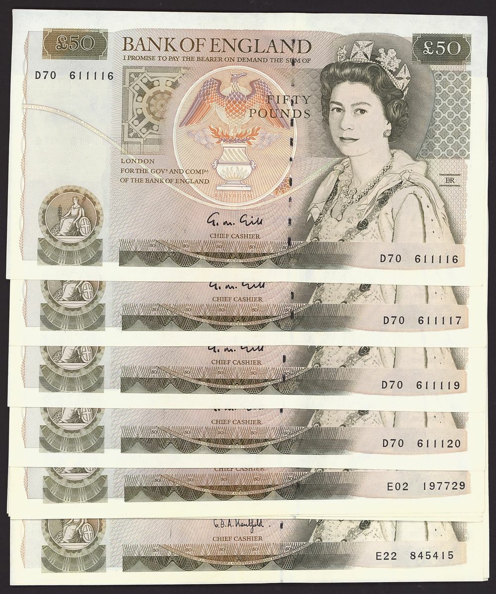 Bank of England, £50, G. M. Gill (5) , G.E.A. Kentfield (8), (EPM B356, B361) generally extremely fine to about uncirculated (13 notes)
