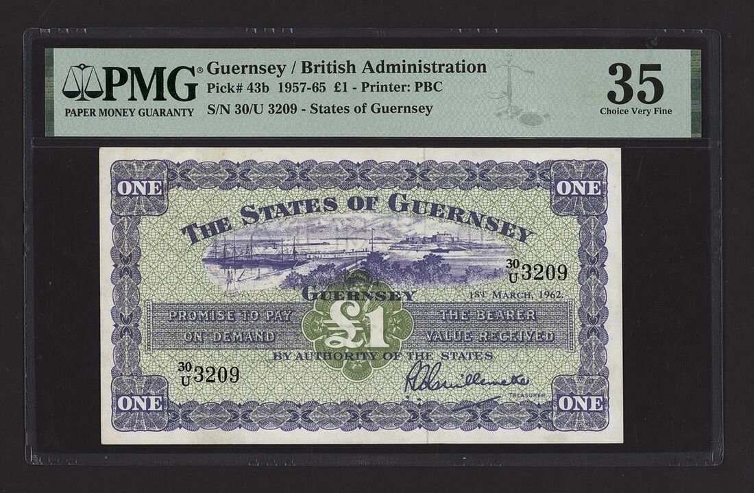 (x) States of Guernsey, British Administration, £1, 1st March 1962, serial number 30/U 3209, (Pick 43b, BNB 148), in PMG holder 35 Choice Very Fine