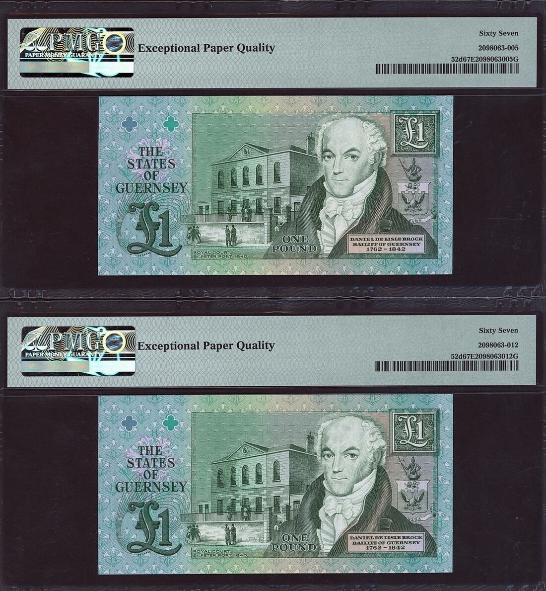 Guernsey, States of Guernsey, three notes, £1, ND (2016), nearby serial numbers