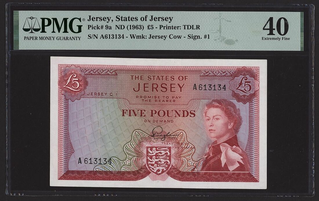States of Jersey, £5, ND (1963), serial number A613134, (Pick 9a, BNB 109), in PMG holder 40 Extremely Fine