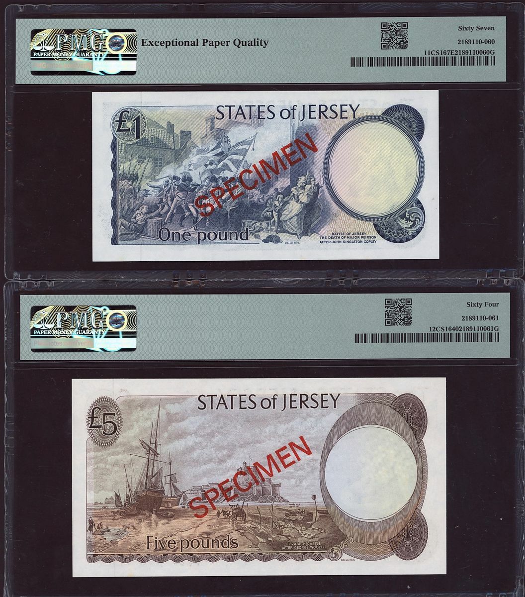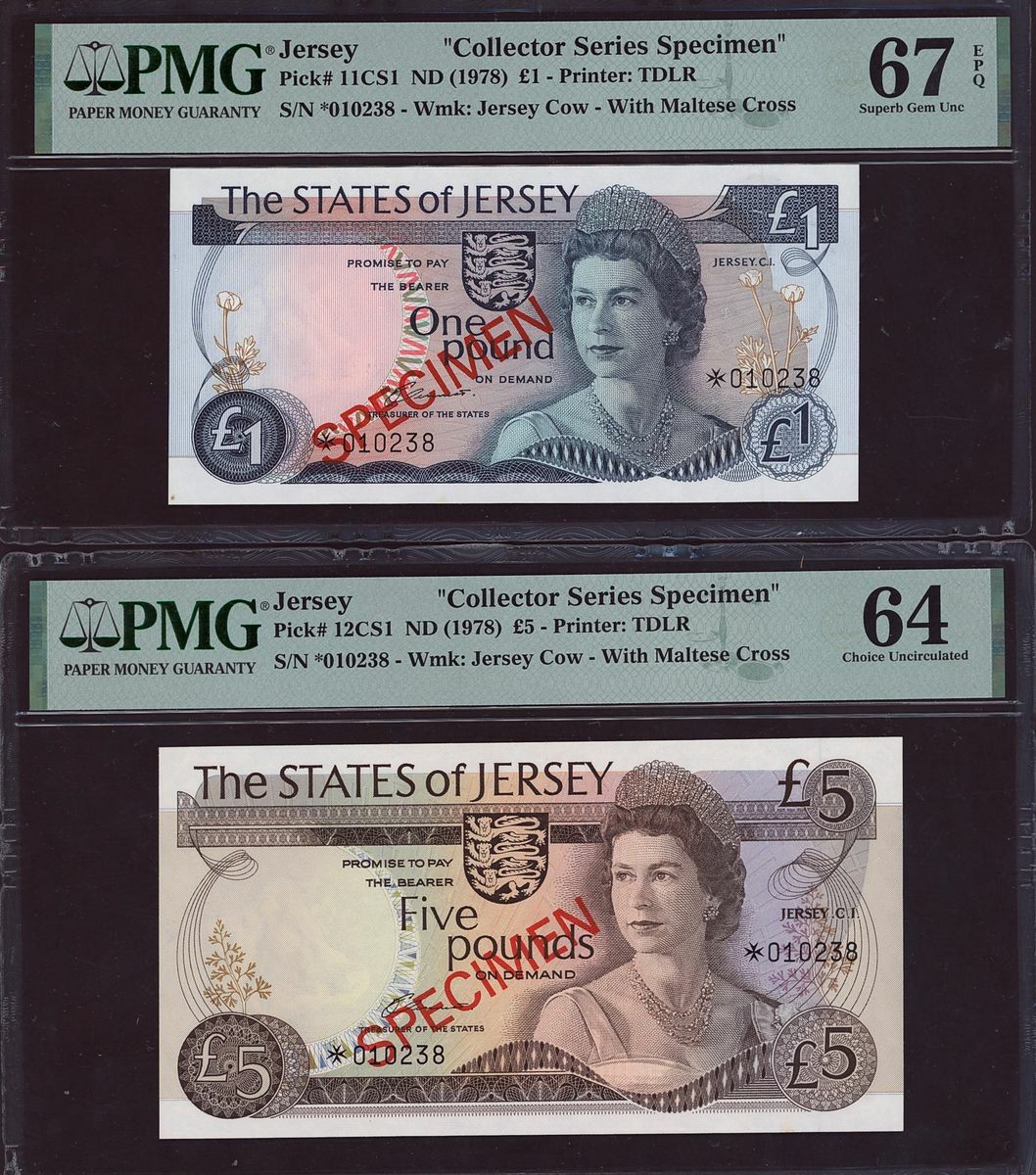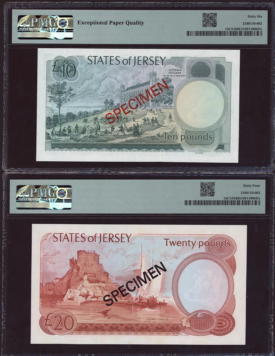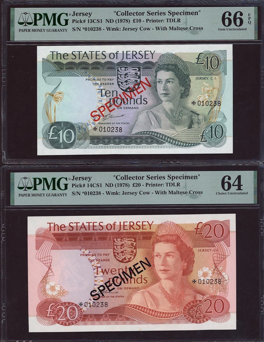 (x) States of Jersey, collector series specimen, £1, £5, £10, £20, ND (1978), watermark: Jersey cow with Maltese Cross