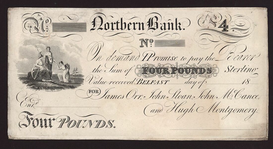 Northern Ireland, Northern Bank, £4, Belfast, 18-- (1820-24), no serial number, (Callaway PB 27A),