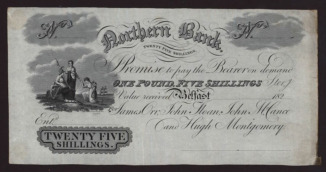 Northern Ireland, Northern Bank, 25 Shillings, Belfast, 182- (1824), no serial number, (Callaway PB27B),