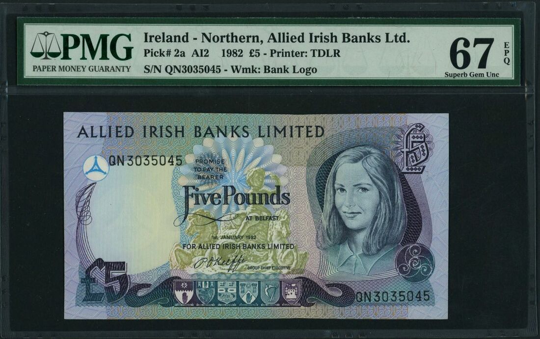 Allied Irish Banks Ltd., Northern Ireland, £5, 1st January 1982, serial number QN3035045, (Pick 2a, BNB 702a), in PMG holder 67 EPQ Superb Gem Uncirculated
