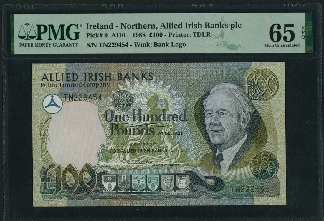 Northern Ireland, Allied Irish Banks plc, £100, Belfast, 1st December 1988, serial number TN229454, watermark: bank logo