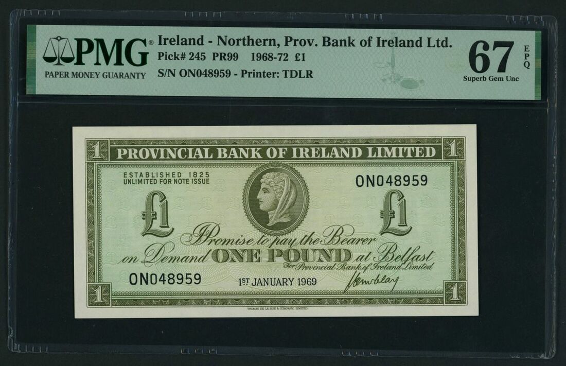 Provincial Bank of Ireland Limited, Northern Ireland, [Top Pop] £1, 1st January 1969, serial number ON048959, (Pick 245, PR99, BNB 613), in PMG holder 67 EPQ Superb Gem Uncirculated