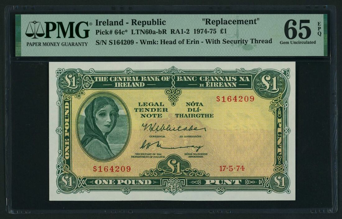 Central Bank of Ireland, replacement £1, 17th June 1974, serial number S164209 (Pick 64c*, LTN60a-bR RA1-2, BNB 209),