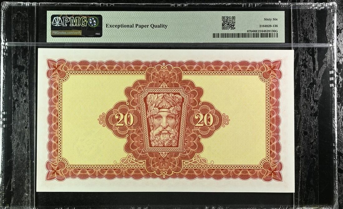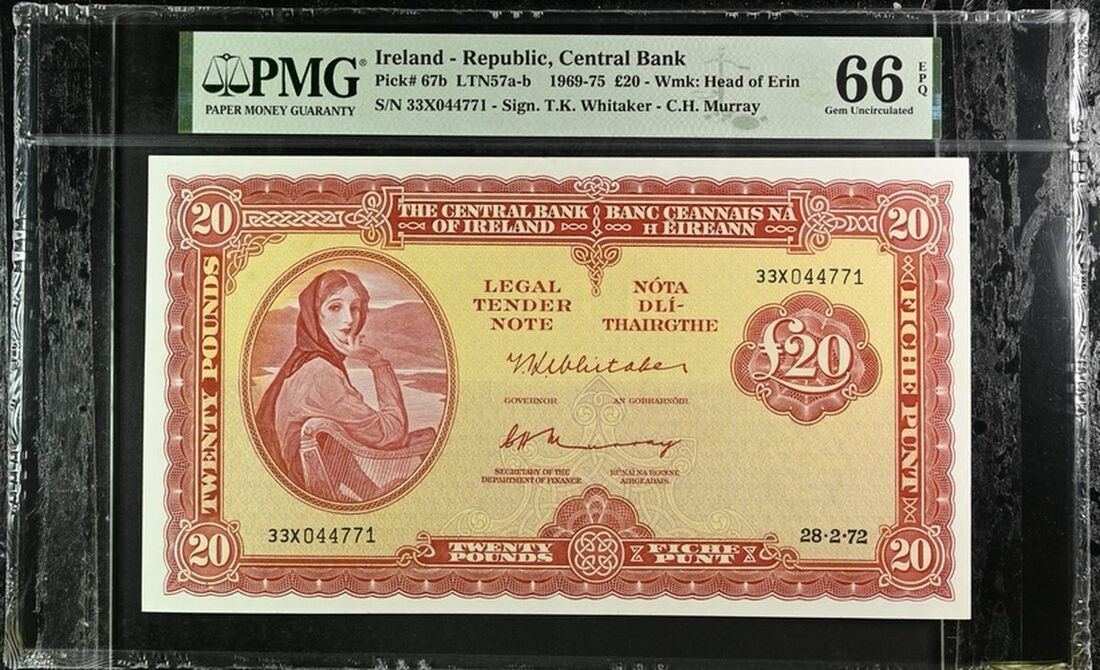 Central Bank of Ireland, [Top Pop] £20, 28th February 1972, serial number 33X044771, (Pick 67, BNB 212), in PMG holder 66EPQ Gem Uncirculated, none graded higher