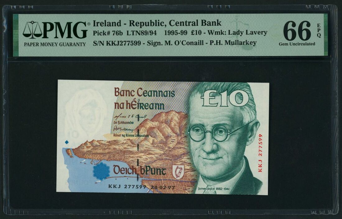 Central Bank of Ireland, £10, 28th February 1997, serial number KKJ277599, (Pick 76b, LTN 89/94, BNB 221), in PMG holder 66 EPQ Gem Uncirculated