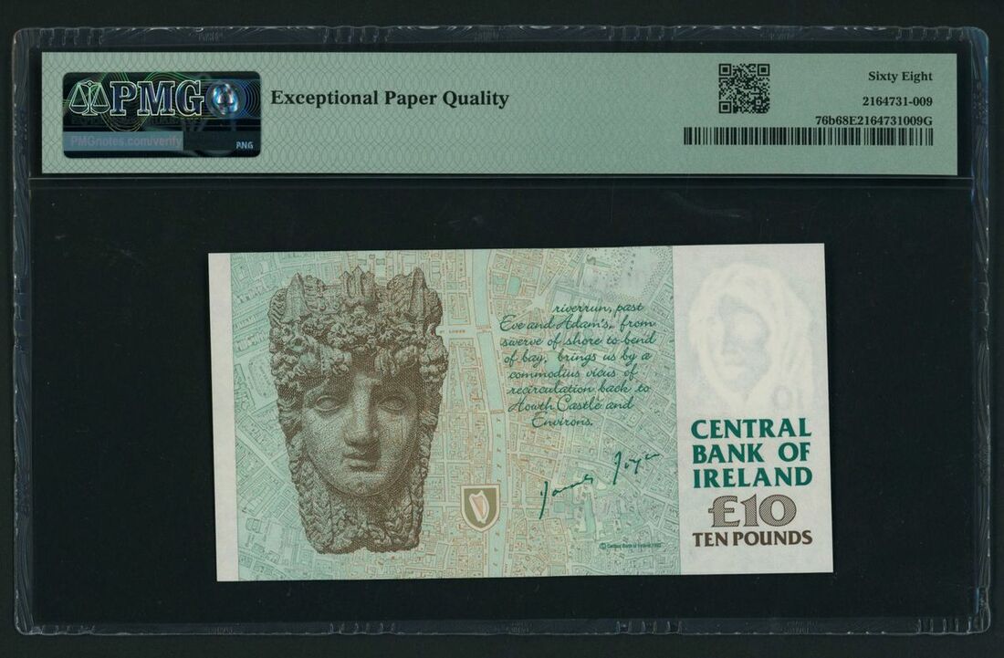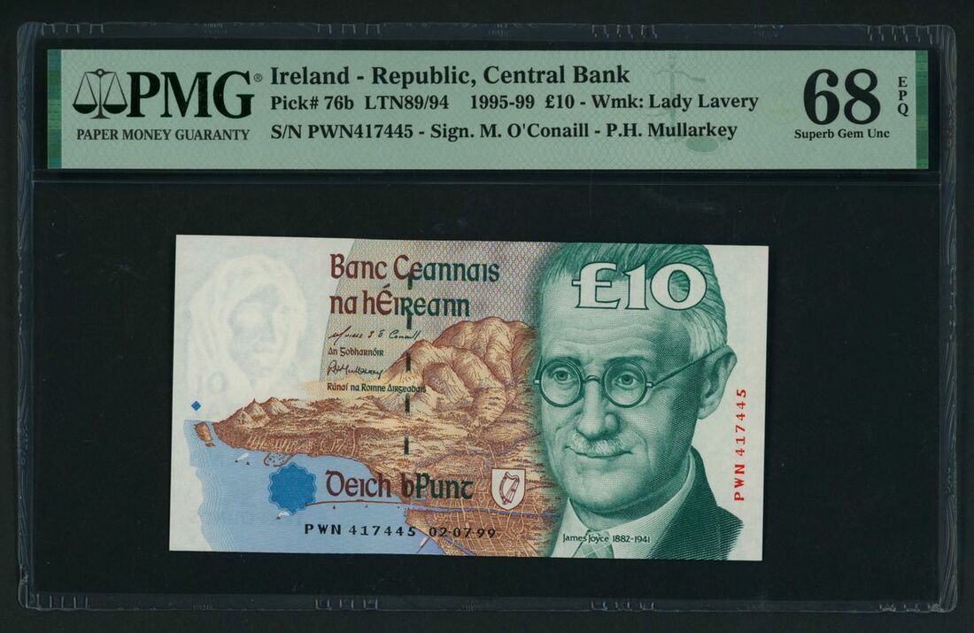 Central Bank of Ireland, £10, 2nd July 1999, serial number PWN417445 (Pick 76b, LTN 89/94, BNB 221), in PMG holder 68 EPQ Superb Gem Uncirculated