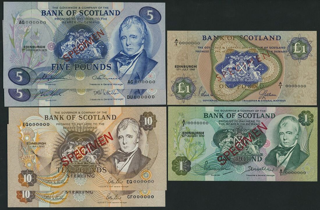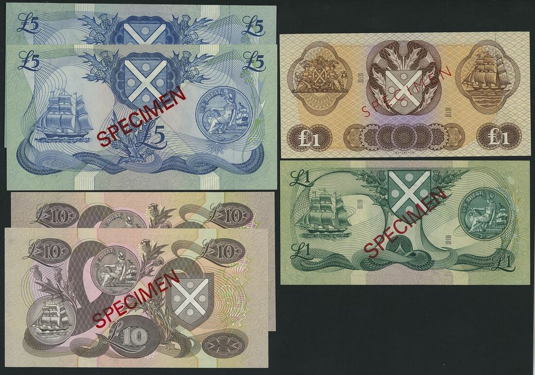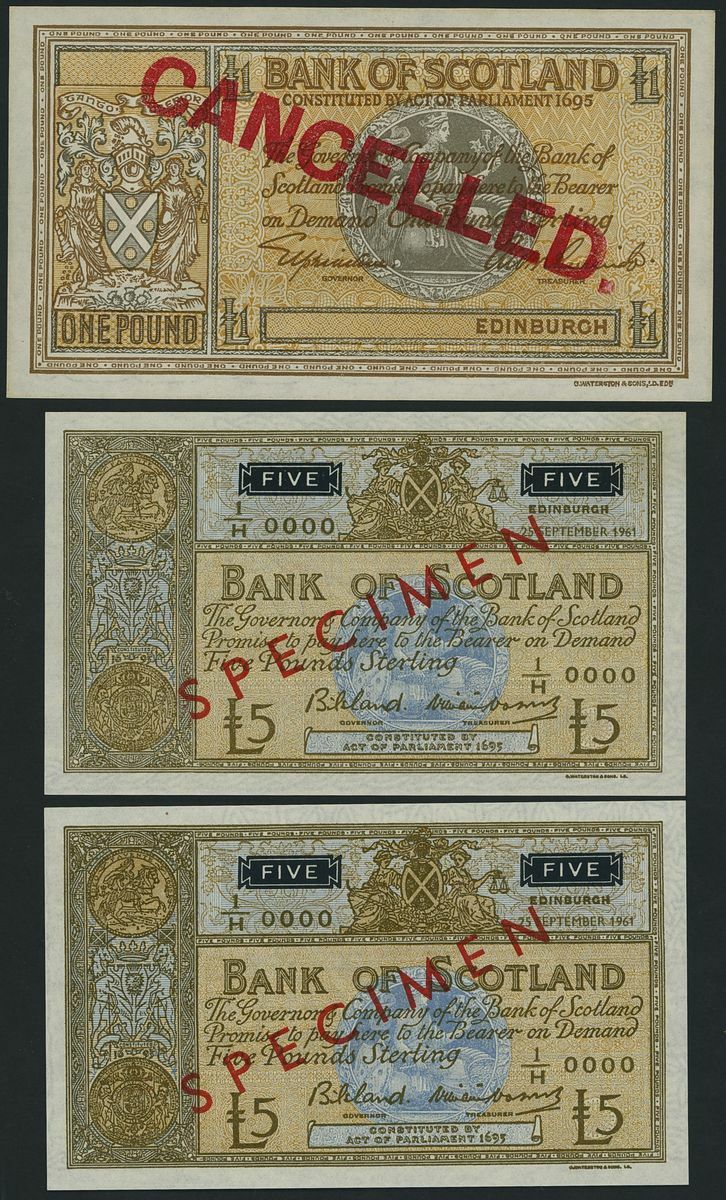 Scotland, Bank of Scotland, [10 specimen notes] £1, £5, £10, £100, Edinburgh, 1935-1994, including one £5 replacement note which has an unlisted date (1988)