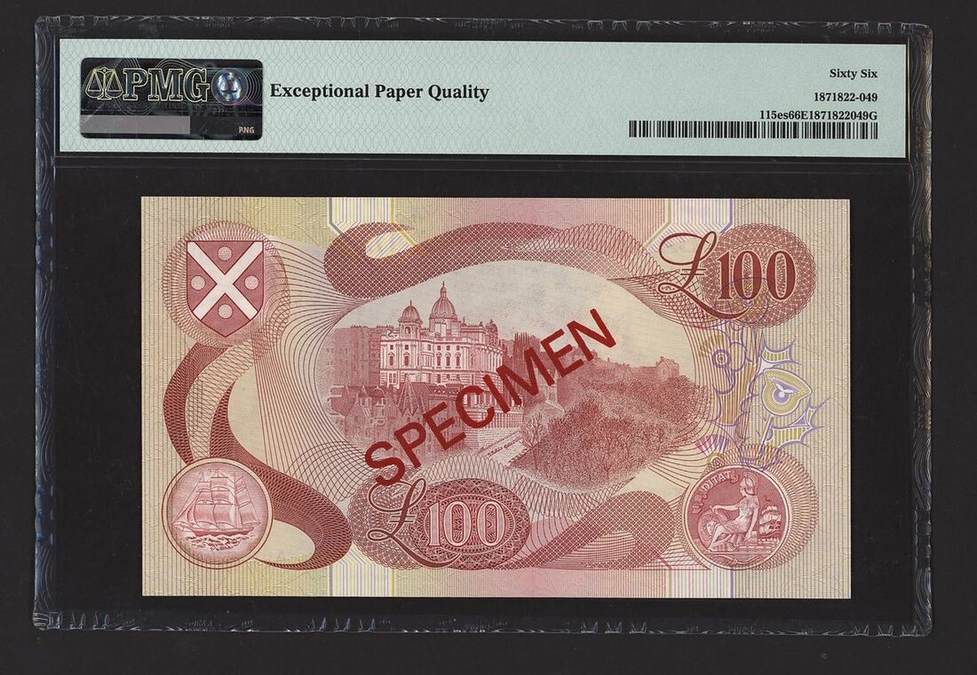 (x) Bank of Scotland, [Top Pop] specimen £100, 26th November 1986, serial number A000000, (Pick 115es), in PMG holder 66 EPQ Gem Uncirculated