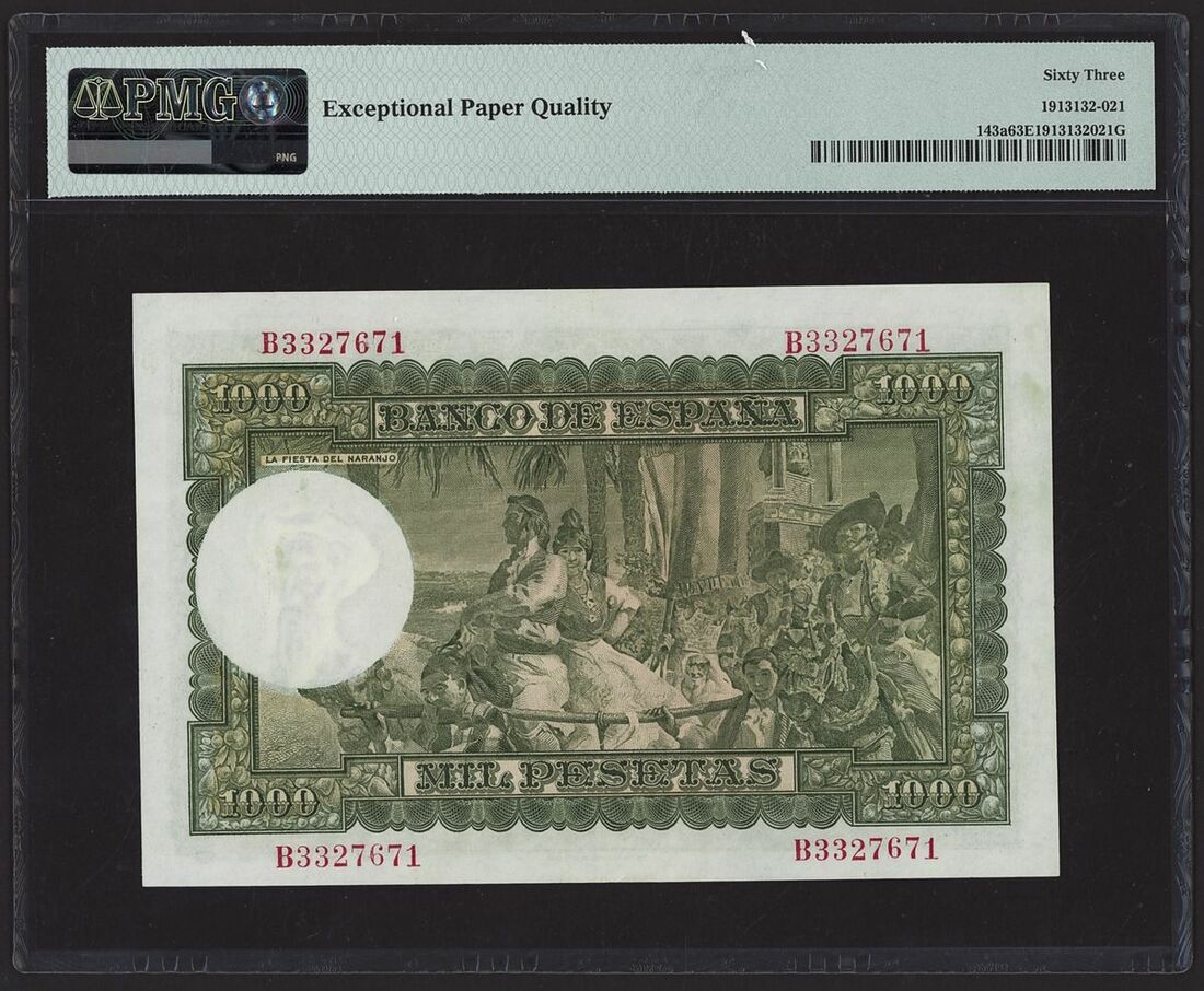 (x) Banco de España, Spain, 1000 Pesetas, Madrid, 31st December 1951, serial number B3327671, (Pick 143a, BNB 609), in PMG holder 63 EPQ Choice Uncirculated
