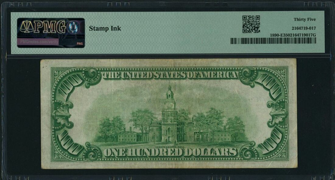 Federal Reserve Bank of Richmond, Virginia, USA, $100, 1929, serial number E00177767A pp K, (Fr. 1890-E), in PMG holder 35 Choice Very Fine, stamp ink