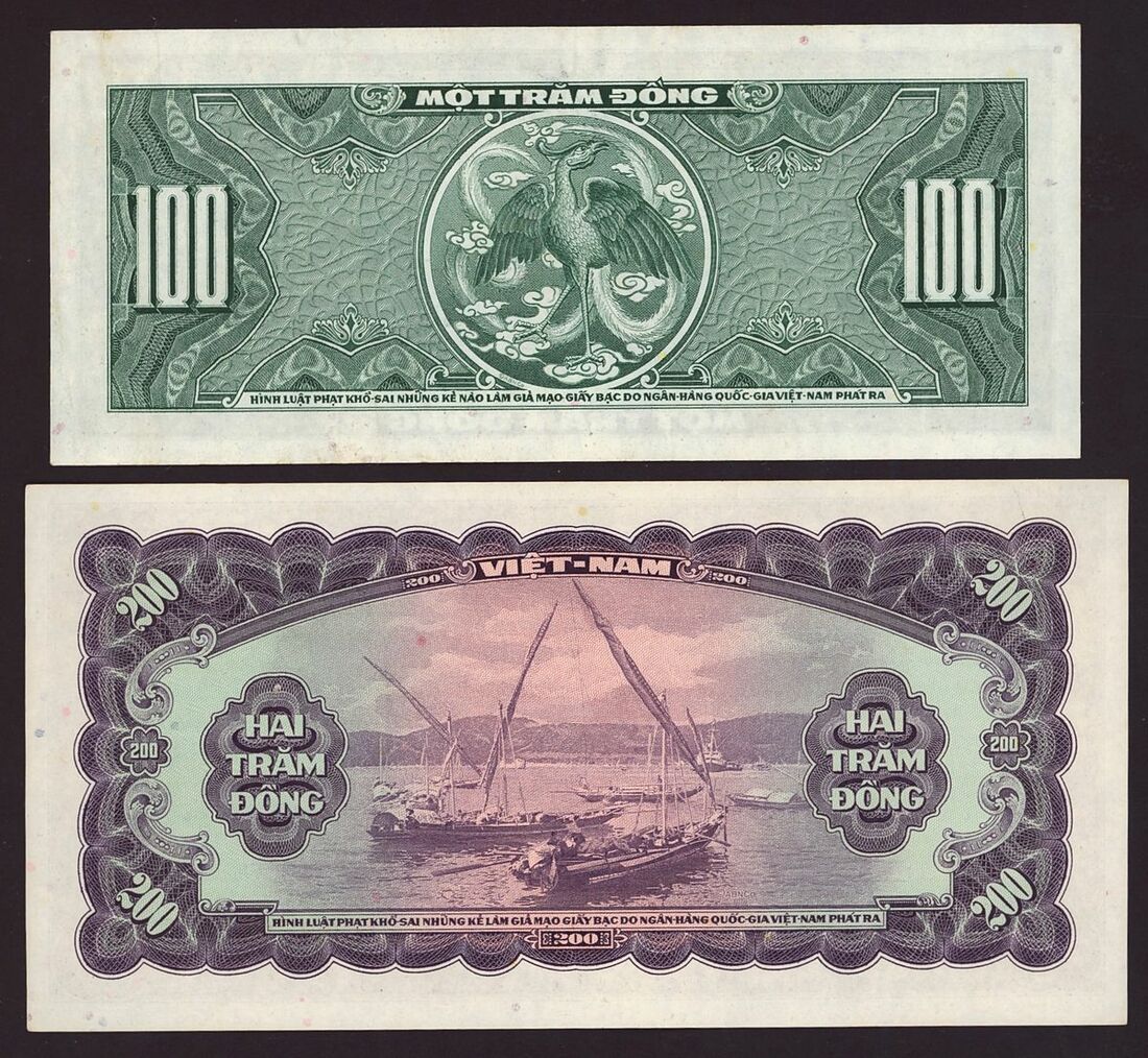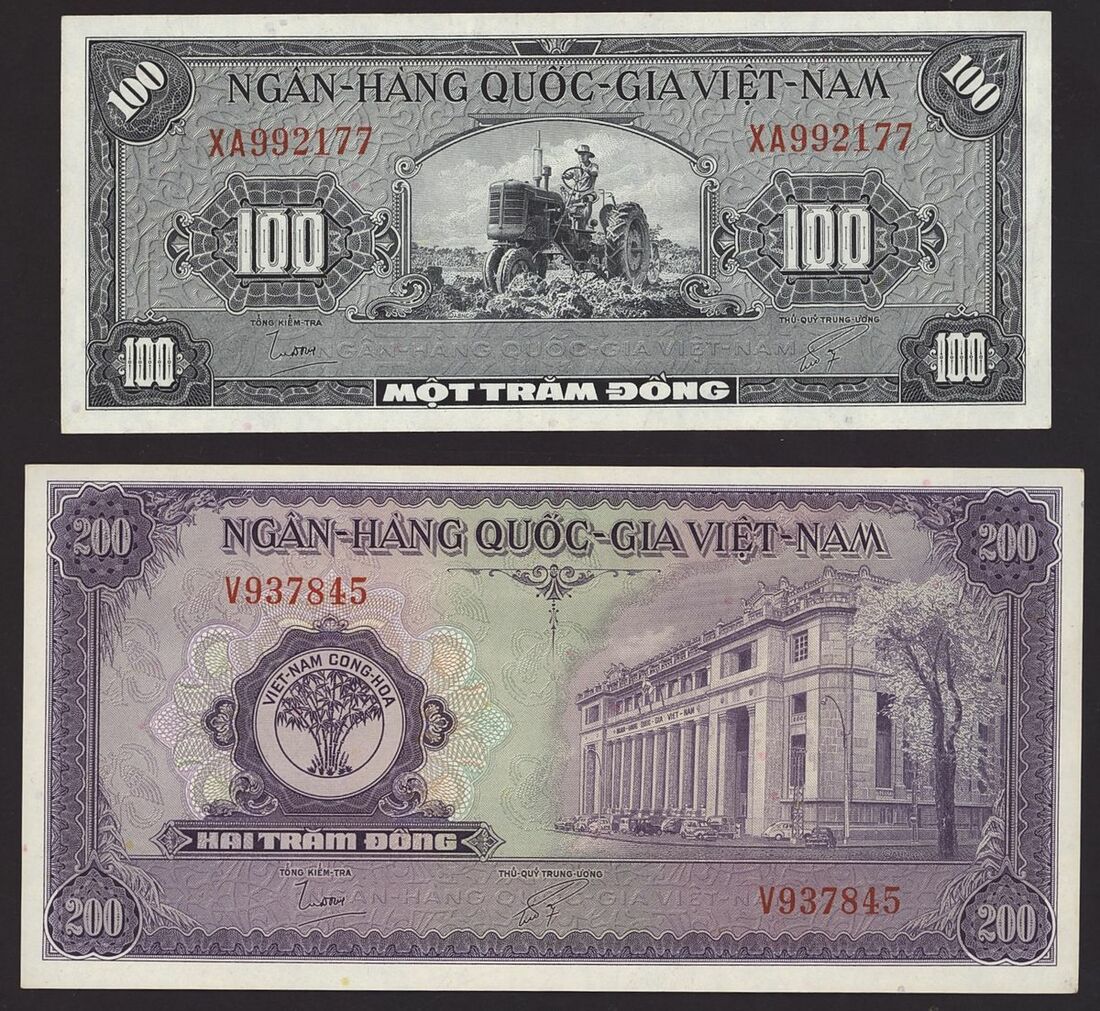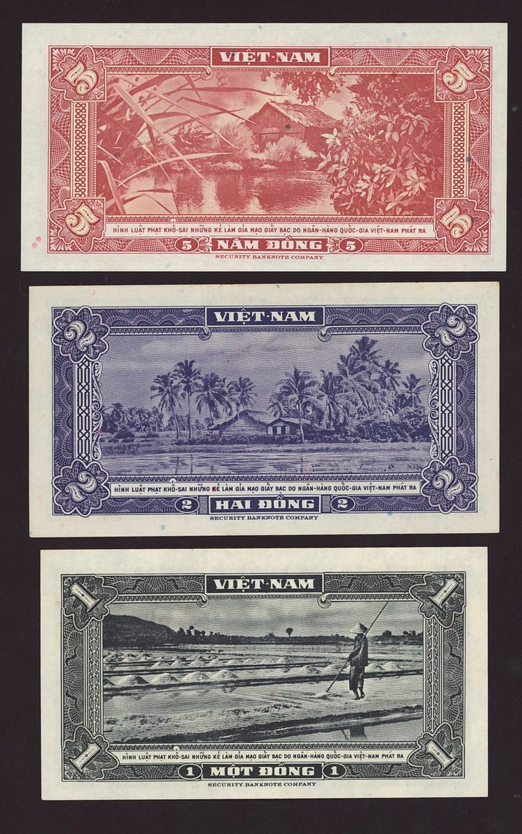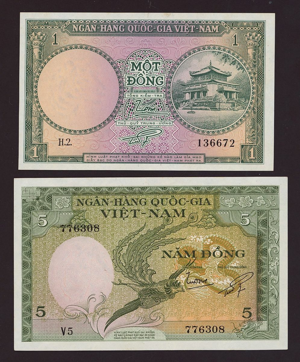 (x) South Vietnam, [9 notes] 1 2 5 10 50 100 200 dong, ND (1955-56), (Pick 11a, 12a, 13a, 1a, 2a, 3a, 7a, 8a, 9a, BNB 101a, 102a, 103a, 110a, 104b, 105b, 112a, 106a, 117a), good very fine to about uncirculated (9 notes)