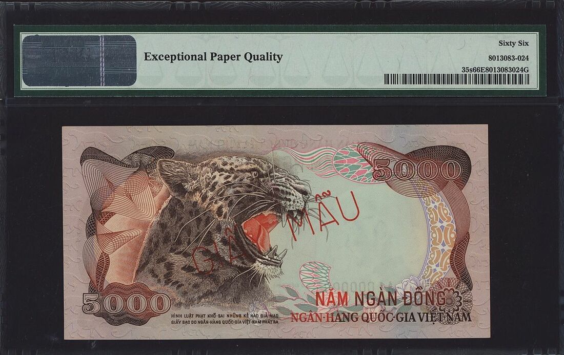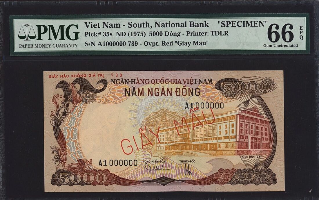 (x) National Bank, South Vietnam, 5000 Dong, ND (1975), serial number A1000000 739, Overprint Red "Giay Mau",