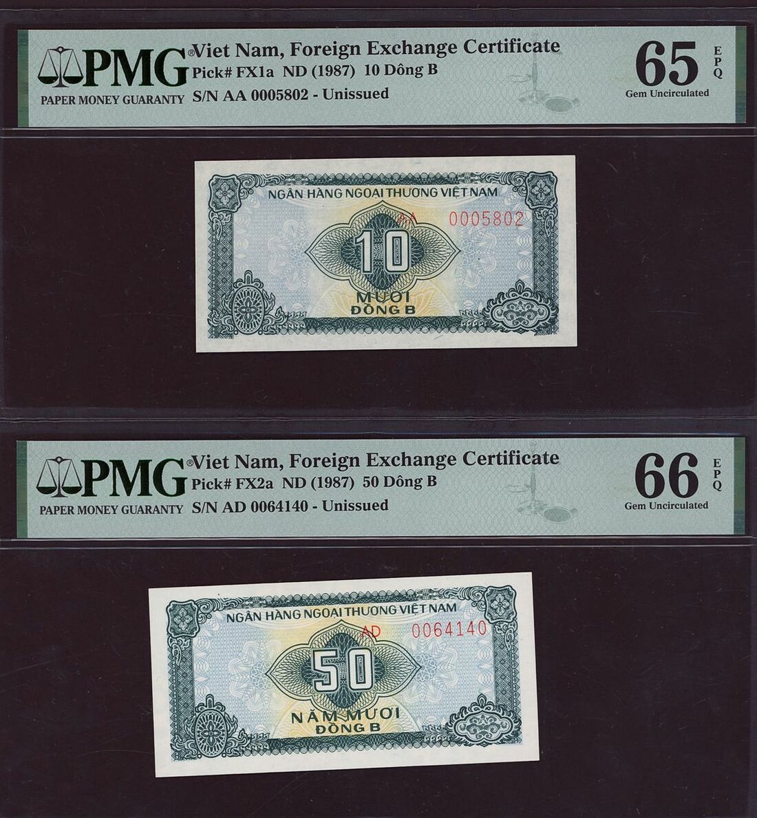 10 Dong B, ND (1987), serial number AA 0005802,