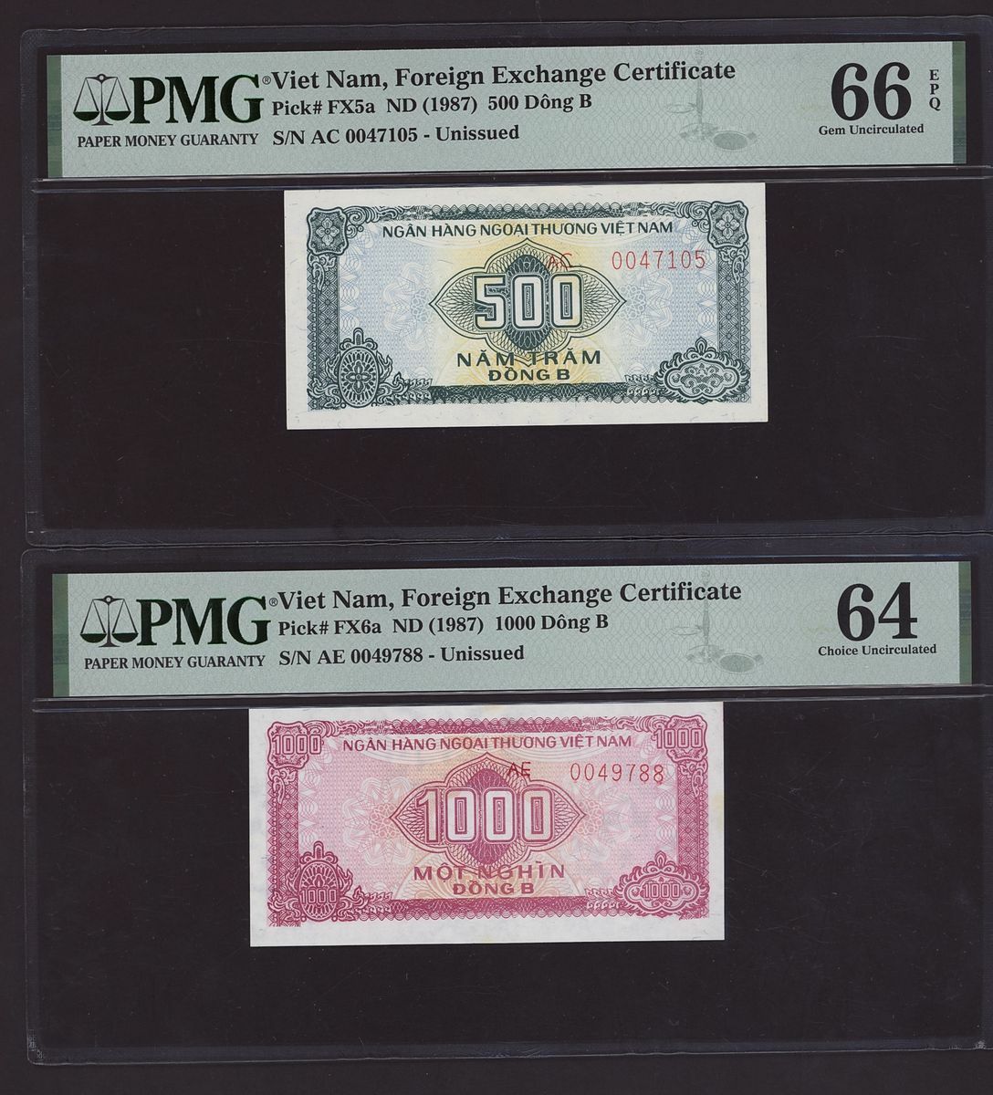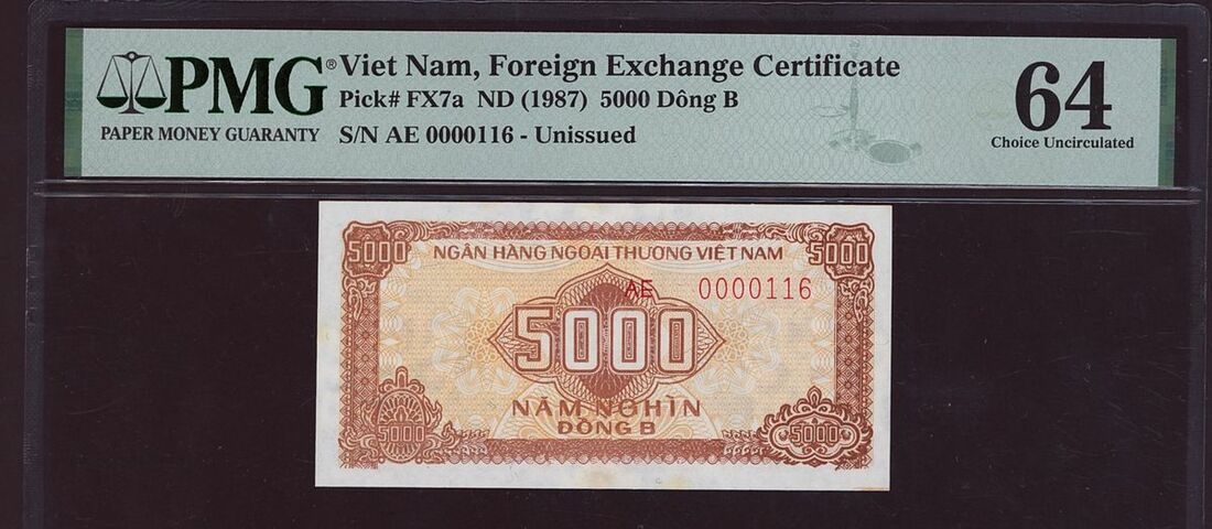 (x) Vietnam, Group of 7 Unissued Viet Nam Foreign Exchange Certificates, 5000 Dong B, ND (1987), serial number AE 0000116,