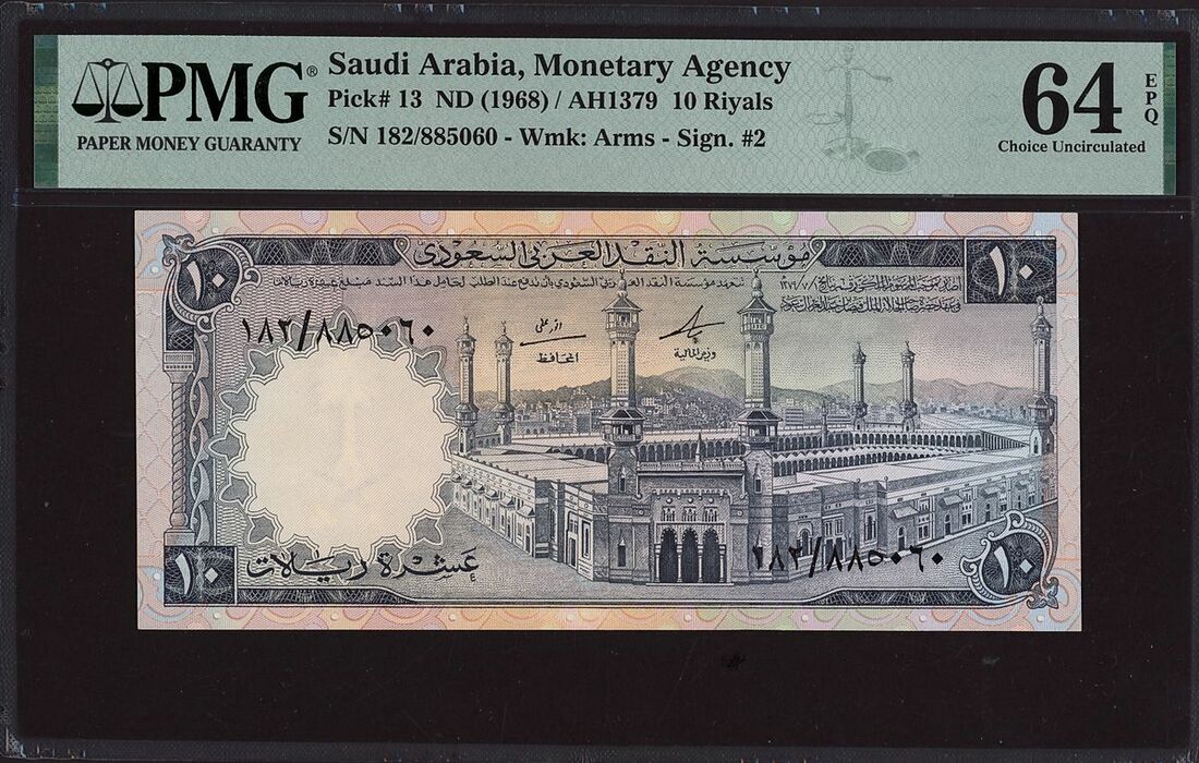 Saudi Arabia, China, two assorted notes, one 10 riyals, one 100 yuan, 1940-1968, watermark on 10 riyals: arms