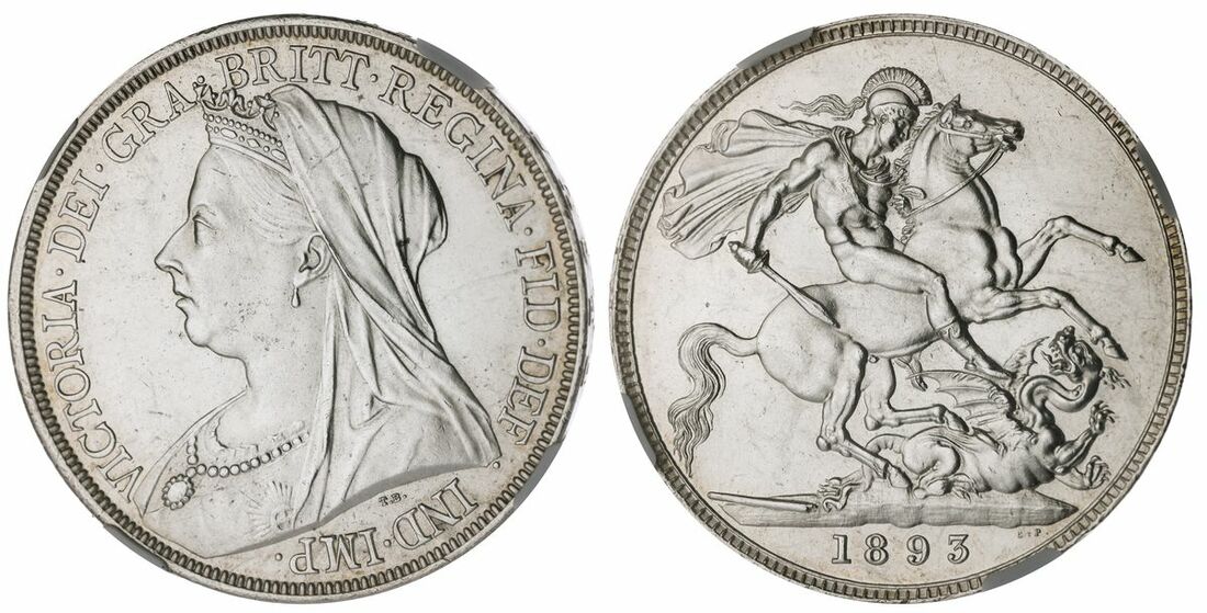 NGC MS61 | Victoria (1837-1901), 'Old Head' Crown, 1893 LVI*, draped bust left, rev. St George and Dragon, upwards lettered edge, 11h (ESC 303; Bull 2593; Spink 3937), some faint bagmarks, otherwise surfaces quite brilliant, an evidently early striking or from polished dies, a bold extremely fine, in NGC holder, graded MS61 (Cert. #5880340-006)