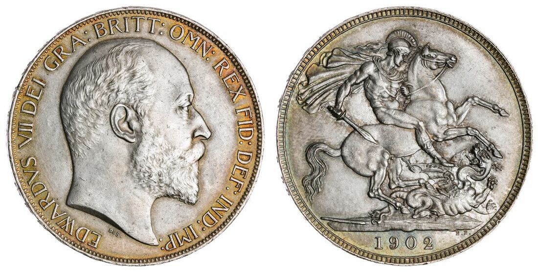Edward VII (1901-1910), Currency Issue, Crown, 1902 II, bare head right, rev. St George and Dragon, edge lettered upwards, 28.26g, 12h (ESC 362; Bull 3562; Spink 3978), lustrous, extremely fine