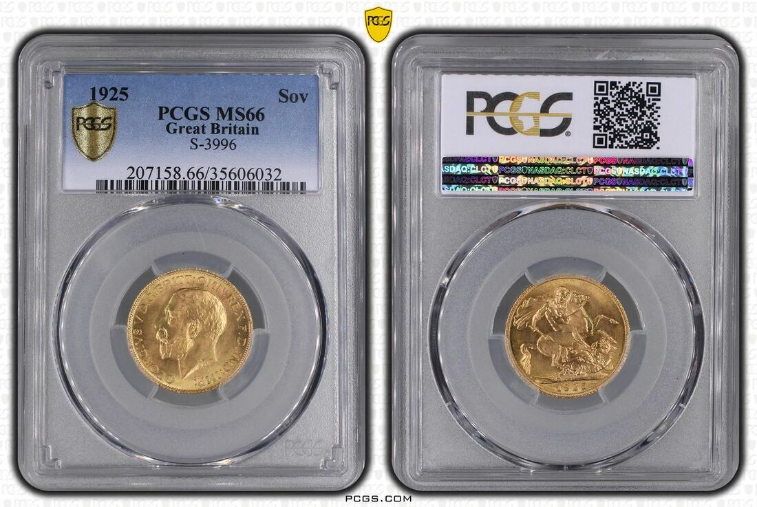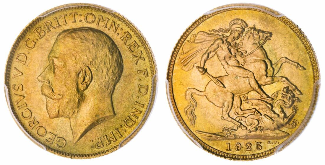 (g) PCGS MS66 | George V (1910-1936), Sovereign, 1925, bare head left, rev. St George and dragon, milled edge, 11h (Marsh 220; EMC 1441; Bentley 364; Spink 3996), choice uncirculated, in PCGS holder, graded MS66 (Cert. #35606032)
