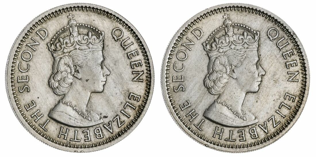 Nigeria, Elizabeth II (1952-1963), Double-Headed Mule Shilling, c. 1959-1962, by Cecil Thomas for the Royal Mint, London, crowned bust right, wearing Tudor Crown, rev. crowned bust right, wearing Tudor Crown, 23mm. diameter, incuse security edge with outer straight graining, 4.95g, 23mm. (cf. KM 5; Schön 36), two small rim nicks, otherwise lightly toned,  extremely fine, an excessively rare and remarkable 20th Century mule