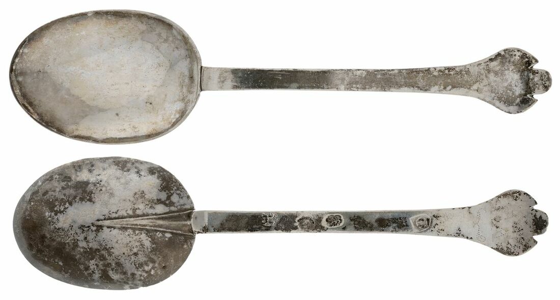 Silver spoons first came to Britain with the Romans, however, the Trefid style developed in France during the 17th Century. The French know it as ‘Pied de Biche’ ["Deer’s foot"]. Charles II whilst in exile grew accustom to that fashion, and quickly popularised it in England upon his Restoration in 1660. Trefids are termed ‘the French Fashion Spoons’, and the style spread very quickly throughout the United Kingdom; in part due to the British people who took their old spoons to the silversmiths to have them melted and made into the new trefid style – that is if they could afford it.