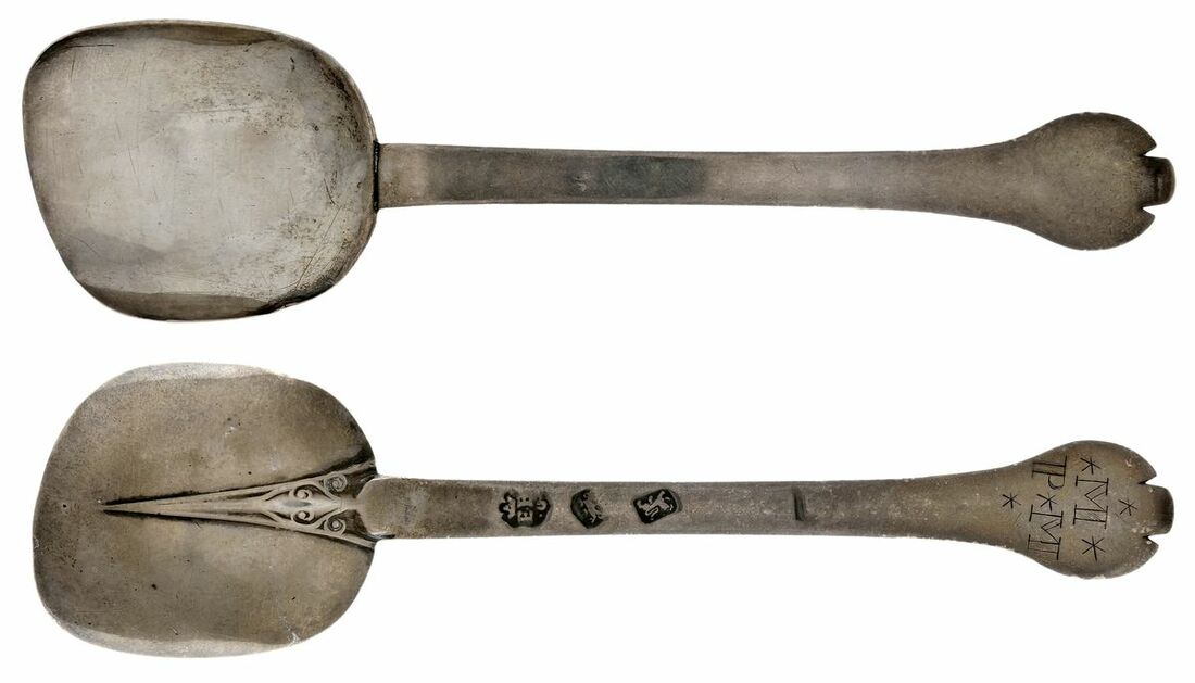 Stuart, Restored (1660-1714), Restoration 'Pied de Biche' Silver 'Reeded Rat-Tail' Trefid Spoon, ‘Crowned EH’; London, pricked PMM with stars, the bowl shortened by repeated right-hand usage, the decoration extant, otherwise about very fine